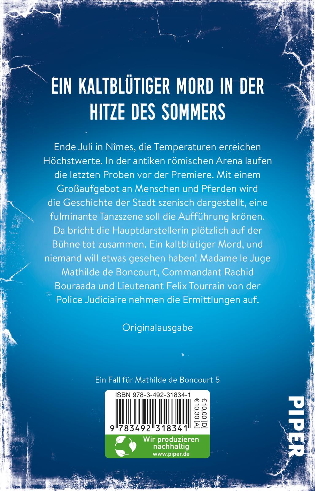 Eine der Darstellerinnen, eine junge Flamenco-Tänzerin, bricht plötzlich inmitten all der Menschen tot zusammen. Ein kaltblütiger Mord, und niemand hat etwas gesehen! Madame le Juge Mathilde de Boncourt, Commandant Rachid Bouraada und Lieutenant Felix Tourrain von der Police Judiciaire nehmen die Ermittlungen auf.