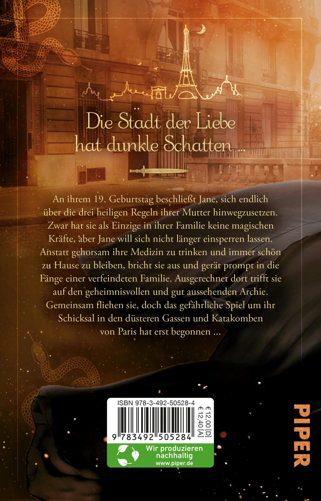 An ihrem 19. Geburtstag beschließt Jane, sich endlich über die drei heiligen Regeln ihrer Mutter hinwegzusetzen. Zwar hat sie als Einzige in ihrer Familie keine magischen Kräfte, aber Jane will sich nicht länger einsperren lassen. Anstatt gehorsam ihre Medizin zu trinken und immer schön zu Hause zu bleiben, bricht sie aus und gerät prompt in die Fänge einer verfeindeten Familie. Ausgerechnet dort trifft sie auf den geheimnisvollen und gut aussehenden Archie. Gemeinsam fliehen sie, doch das gefährliche Spiel um ihr Schicksal in den düsteren Gassen und Katakomben von Paris hat erst begonnen ...