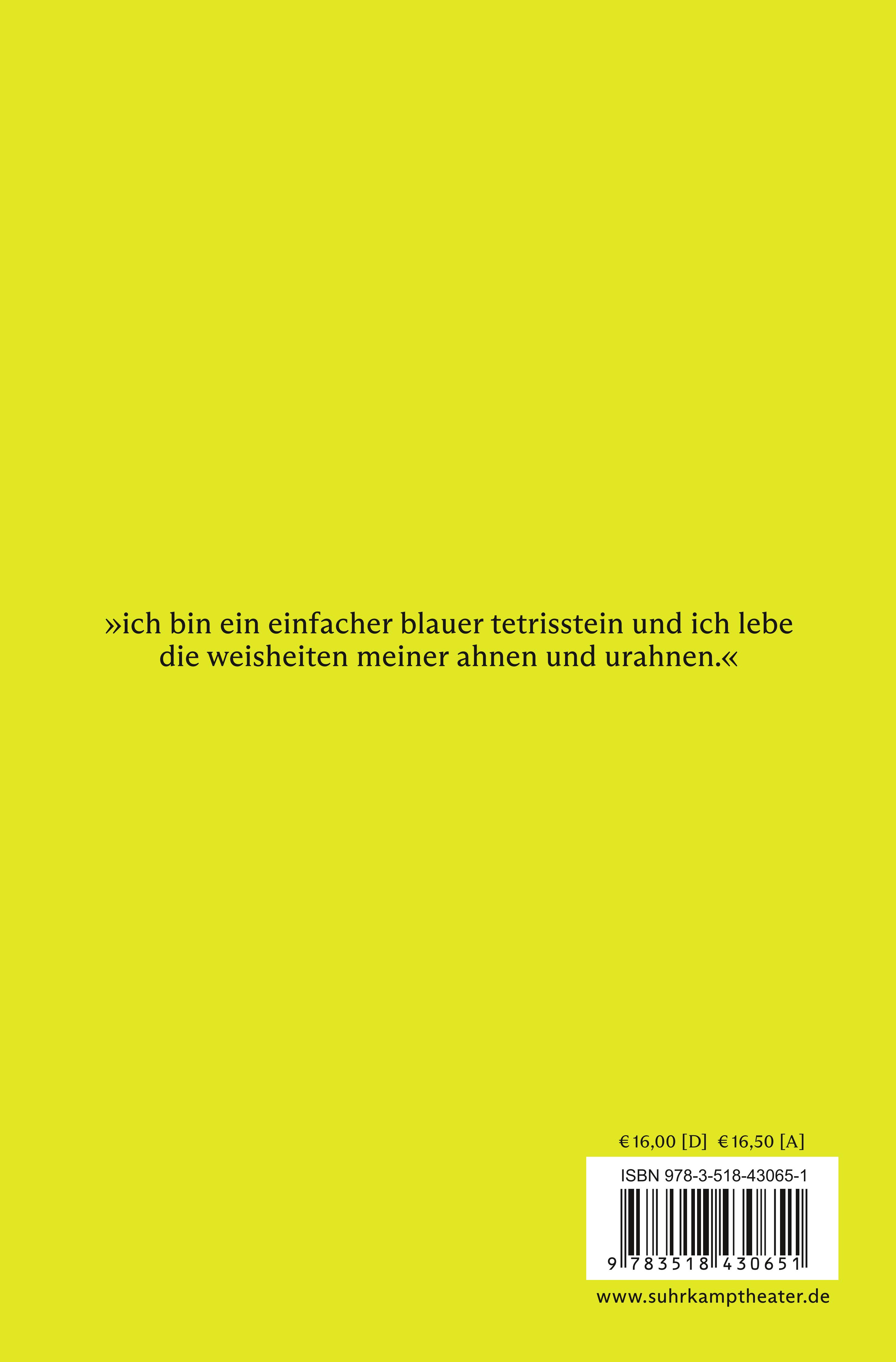 | Schlagworte | Aktuelle Stücke • AutorInnenpreis der Theaterallianz der freien österreichischen Bühnen 2018 • besonderes Geschenk • Einhorn • Gemeinschaft • Komik • moderne Dramatik • NachSpielPreis des Heidelberger Stückemarkts 2019 • NachSpielPreis des Heidelberger Stückemarkts 2019 • Nestroy-Preis: Bestes Stück - Autor:innenpreis 2021 • neues Buch • Poesie • ROTAHORN-Literaturpreis 2018 • tetris • Zukunft |