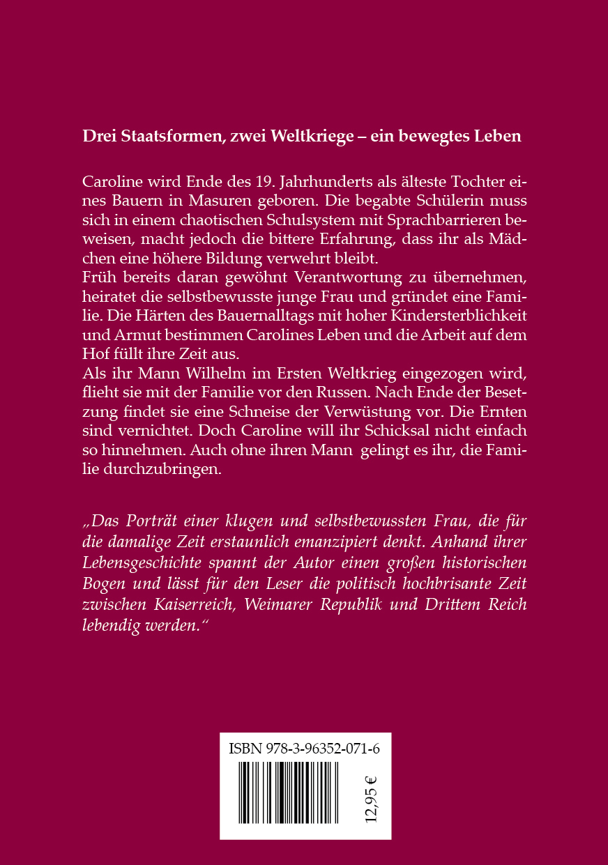 | Schlagworte | Emanzipation • Erinnerung • Erster Weltkrieg • Familienplanung • Flucht • Kaiserreich • Krieg • Masuren • Ostpreußen • Vertreibung • Weimarer Republik • Zweiter Weltkrieg |