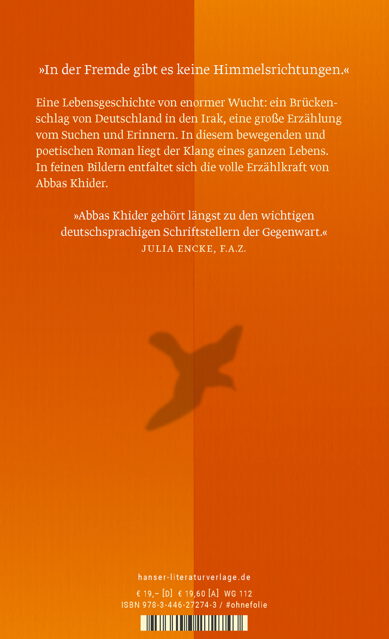 „Abbas Khider schreibt mit einer einzigartigen Mischung aus Gedankentiefe, genauer Beobachtung und Leichtigkeit.“ ARD ttt, 23.01.22