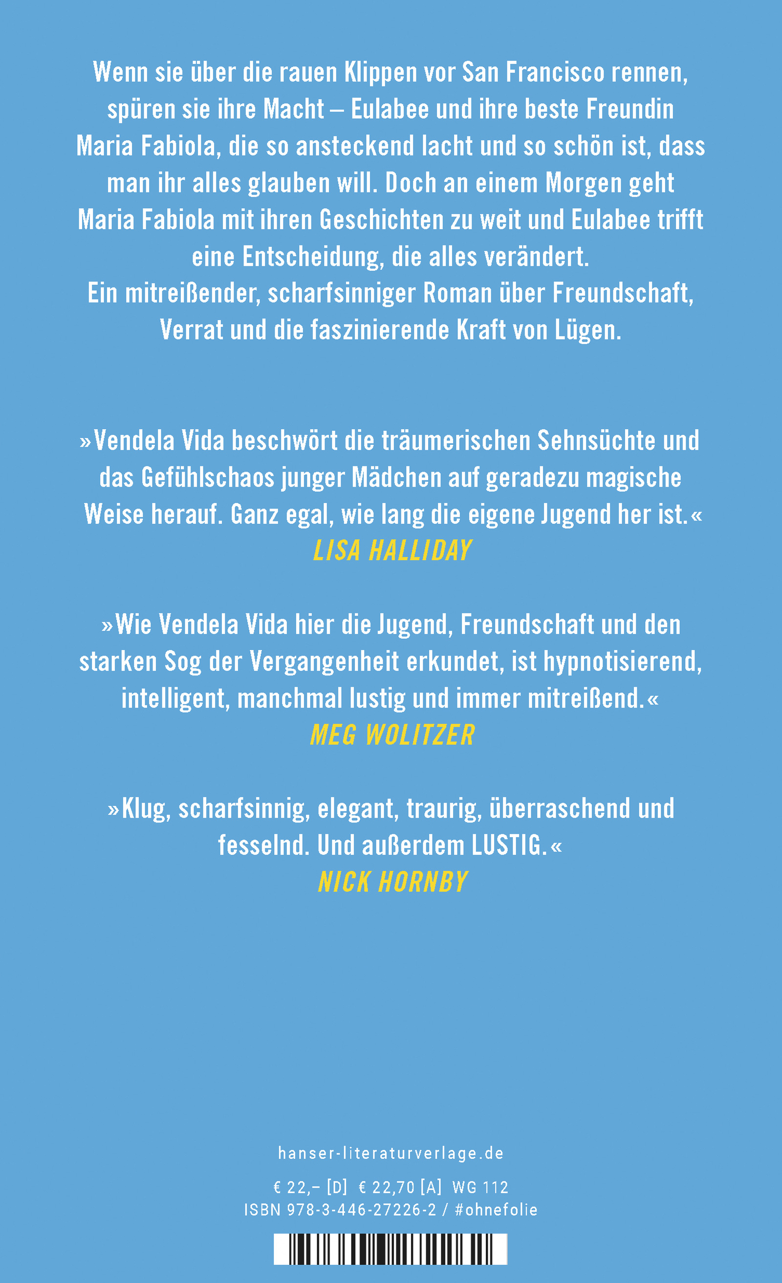 "Vendela Vida erzählt in einem lakonischen Ton über die Launen und Verwirrungen, die Mädchen in der Pubertät erleben. Ein packender Roman über eine große Lüge sowie über die Freundschaft und ihre Grenzen – und überrascht mit einem unerwarteten Ende." Barbara Geschwinde, WDR 3, 13.05.22