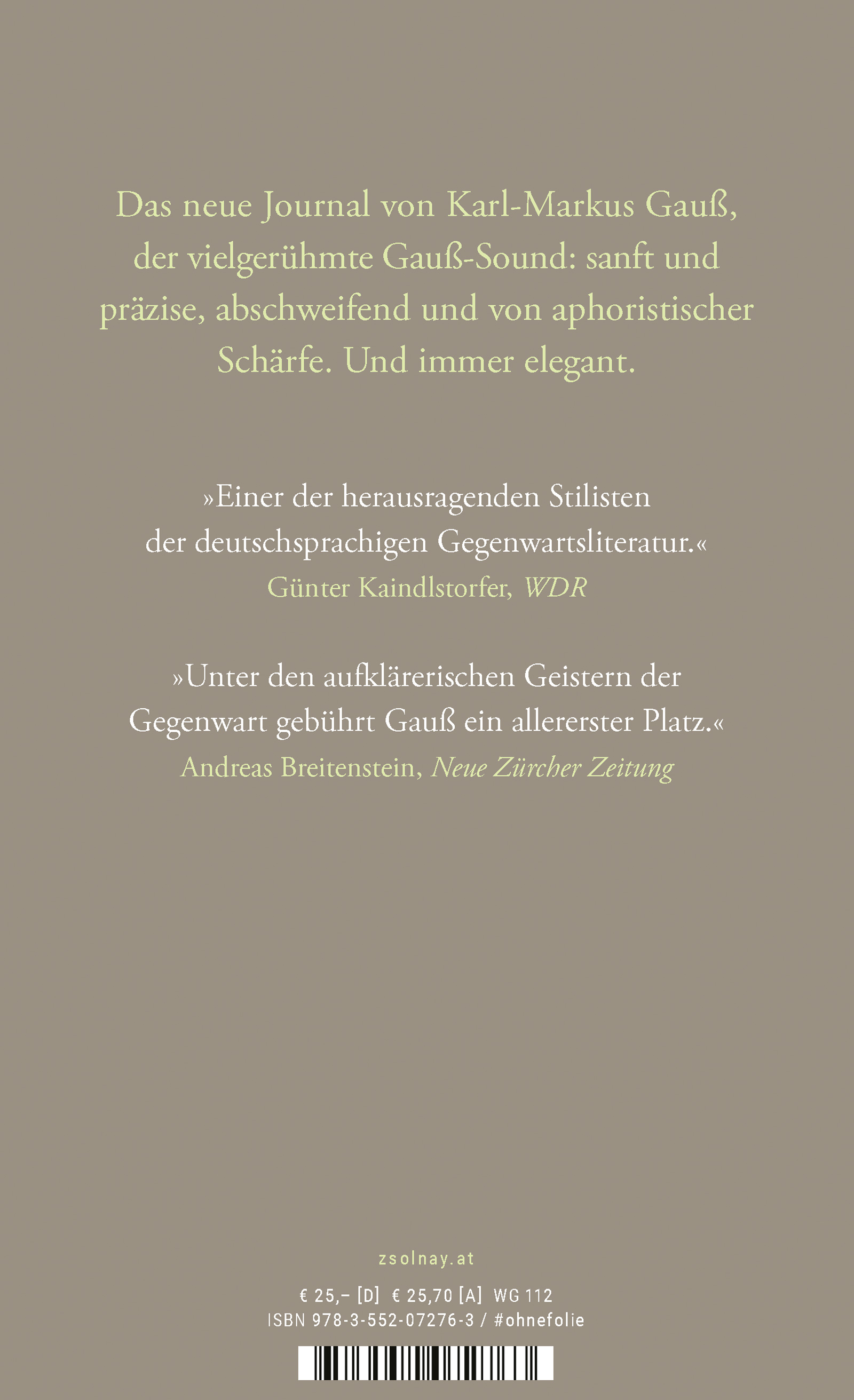 „So wird Gauß zu einem Seismographen des Zeitgeistes, der in der deutschsprachigen Literatur nicht seinesgleichen hat: nicht neutral und ausgewogen, sondern kritisch gegen jede Position, aber ohne den Zwang, immer anders und gegen alles sein zu müssen. Und das alles in einem furiosen sprachlichen Feuerwerk.“ Cornelius Hell, Ö1 ex libris, 13.02.22