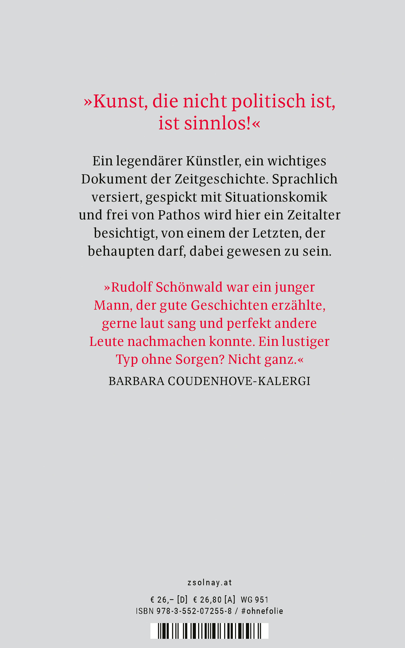 'Rudolf Schönwald war ein junger Mann, der gute Geschichten erzählte, gerne laut sang und perfekt andere Leute nachmachen konnte. Ein lustiger Typ ohne Sorgen? Nicht ganz." Barbara Coudenhove-Kalergi