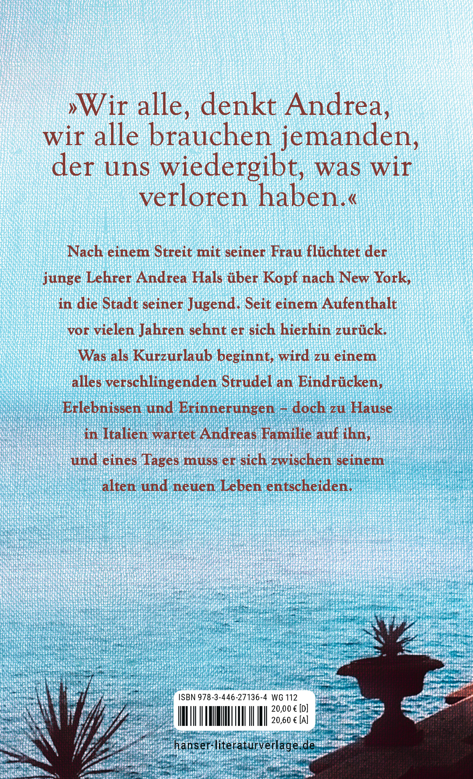 Von der behüteten Turiner Bürgerlichkeit über die Schattenexistenz in New York in eine überraschende Liebesgeschichte: Fabio Geda erzählt einfühlsam den Moment, in dem Aufbruchstimmung und Realität aufeinandertreffen. Warmherzig und klug verwebt Fabio Geda die Schicksale seiner Charaktere miteinander, bis ein Netz entsteht, das die ganze Welt zu umspannen scheint. Eine spannende Erzählung, getrieben von der Zuversicht, dass alles gut wird.