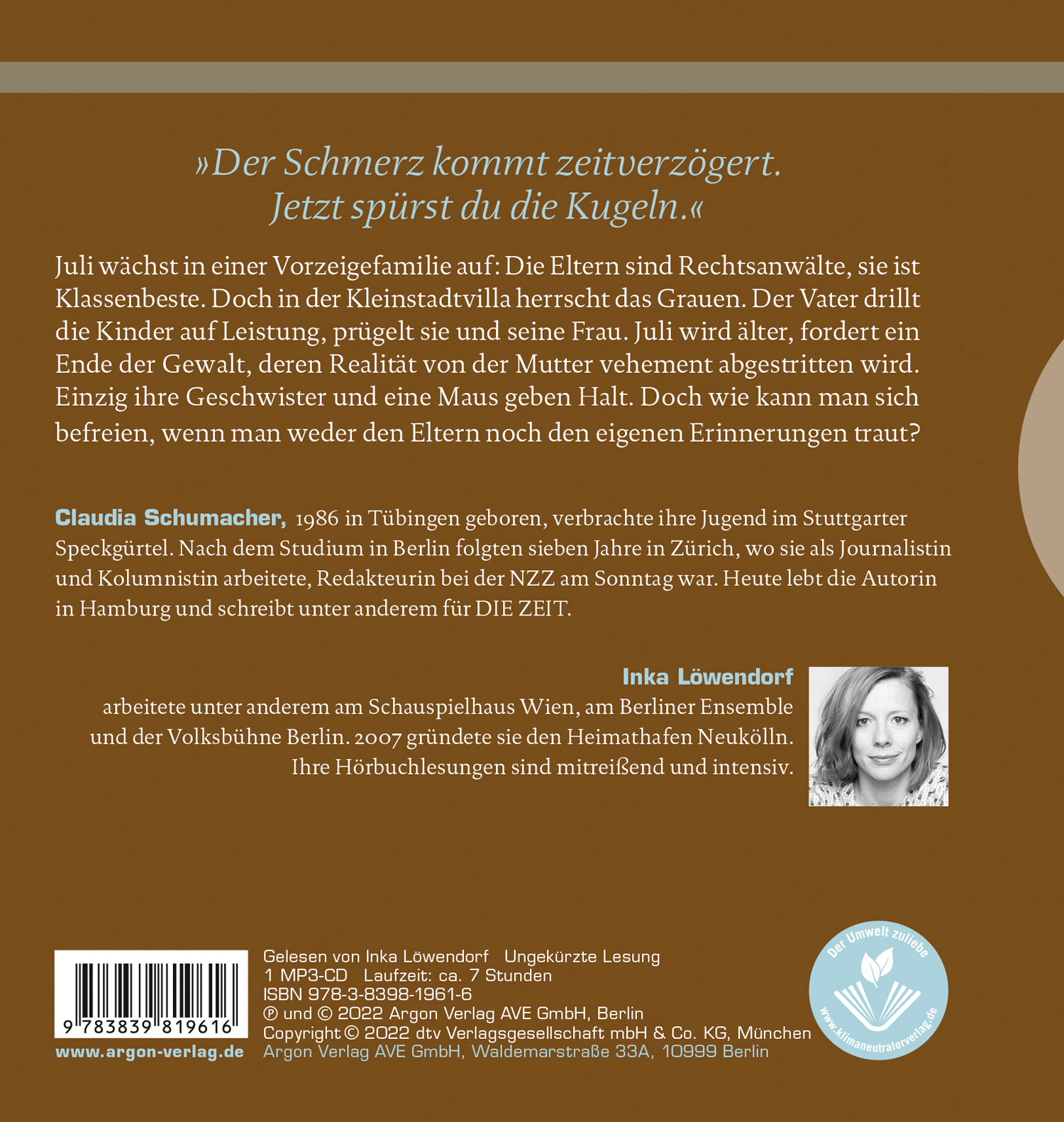 | Schlagworte | Befreiung • Buch des Jahres 2022 • Coming of Age • Debütroman • Drill • Empowerment • Familiäre Gewalt • Familie • Familienleben • female empowerment • Frauenfeindlichkeit • Frauenschicksal • Gaslighting • Geschlechterrollen • Geschwister • Gewalt in der Familie • Hamburger Literaturpreis 2022 • Häusliche Gewalt • Heile Welt • Heilung • Identität • Jugend • Lebenskraft • Leistungsdruck • Longlist Deutscher Hörbuchpreis 2023 • Machtstrukturen • Manipulation • Misshandlung • Mut • Nominierung BücherFrauen-Literaturpreis 2023 • Romane Neuerscheinungen 2022 • Selbstbewusstein • spiegel bestseller • Spiegel Bestseller 2022 • Spiegel Bestsellerliste 2022 • Tochter • Trost • Vater • väterliche Gewalt • Vater-Tochter-Beziehung • Zugehörigkeit |