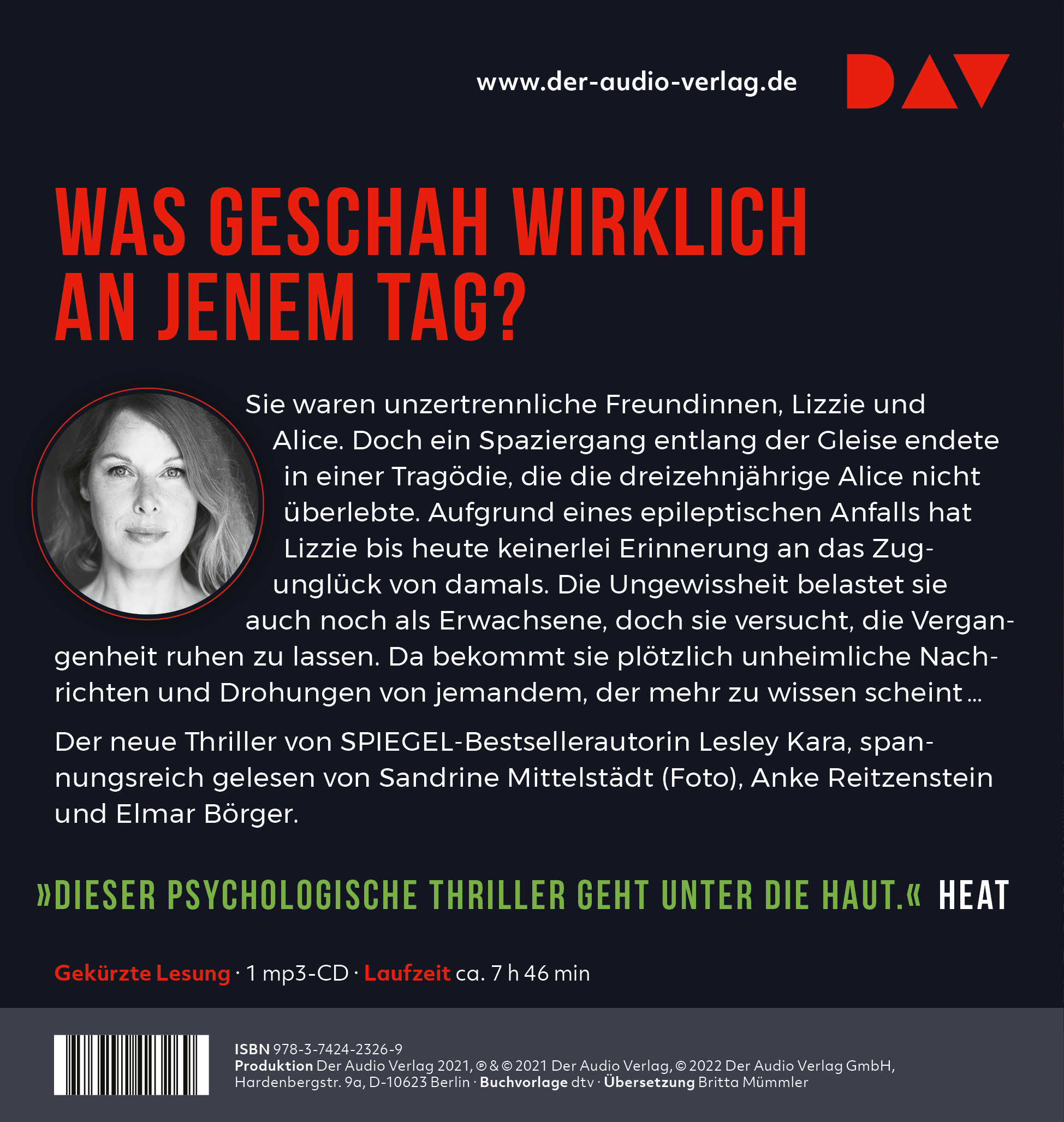 Sie waren unzertrennliche Freundinnen, Lizzie und Alice. Dann: die Tragödie bei einem Spaziergang auf den Gleisen. Doch aufgrund eines epileptischen Anfalls hat Lizzie bis heute keinerlei Erinnerung an das Zugunglück, bei dem Alice mit dreizehn ums Leben kam.