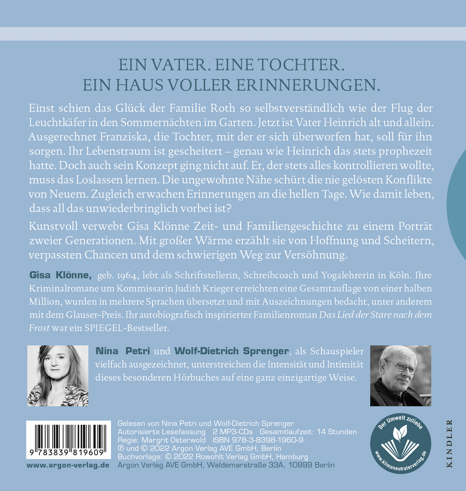 Mit jedem gemeinsamen Tag erwachen nicht nur die alten Konflikte, sondern auch die Erinnerungen an das Glück, das sie einmal teilten: Bei den gemeinsamen Waldläufen, beim Baden am See und in jenen schier endlosen Sommernächten im Garten, wo sie den Leuchtkäfern zusahen.