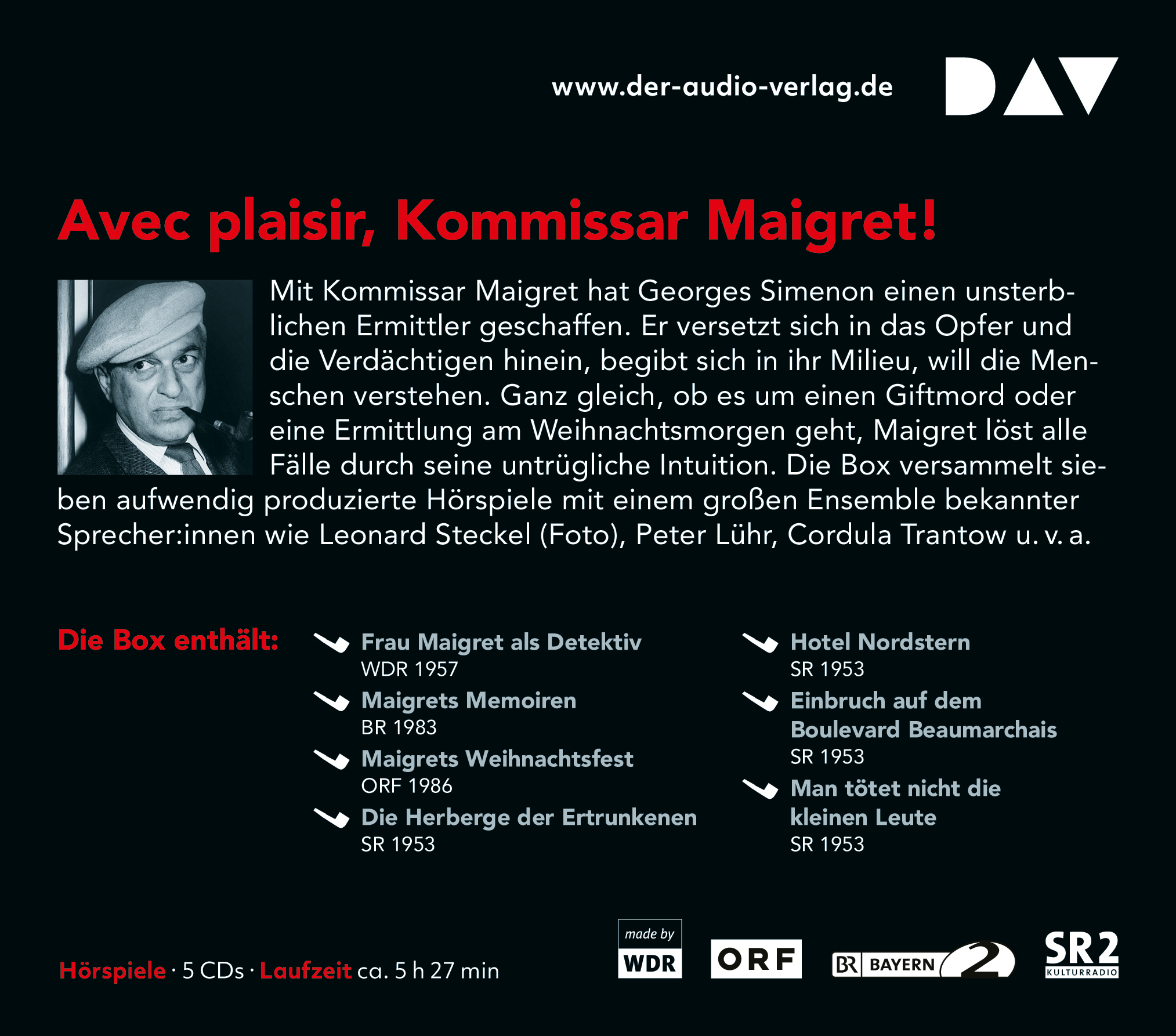 Mit Kommissar Maigret hat Georges Simenon einen unsterblichen Ermittler geschaffen. Er versetzt sich in das Opfer und die Verdächtigen hinein, begibt sich in ihr Milieu, will die Menschen verstehen.