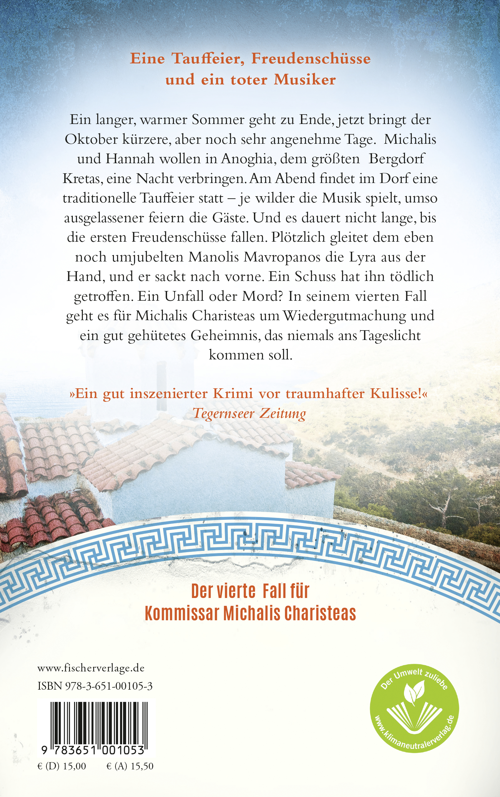 Eine Tauffeier, Freudenschüsse und ein toter Musiker - Der vierte Fall für Kommissar Michalis Charisteas. Im vierten Fall für Michalis Charisteas geht es um kretische Ehre, Wiedergutmachung und gut gehütete Geheimnisse, die niemals ans Tageslicht kommen sollen.