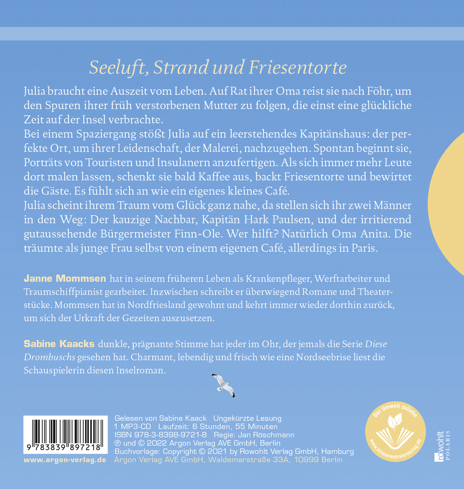 | Schlagworte | Bestseller • Café • Föhr • Generationen-Beziehungen • Hörbuch für den Urlaub • Insel • Inselbuchhandlung • Insel-Roman • Lebenstraum • Meer • Nordfriesische Insel • Nordfriesland • Nordsee • Nordseeinsel • Pension • Romane Neuerscheinungen 2022 • Roman Reihe • Sabine Kaack • Selbstverwirklichung • Urlaub • Urlaubslektüre |