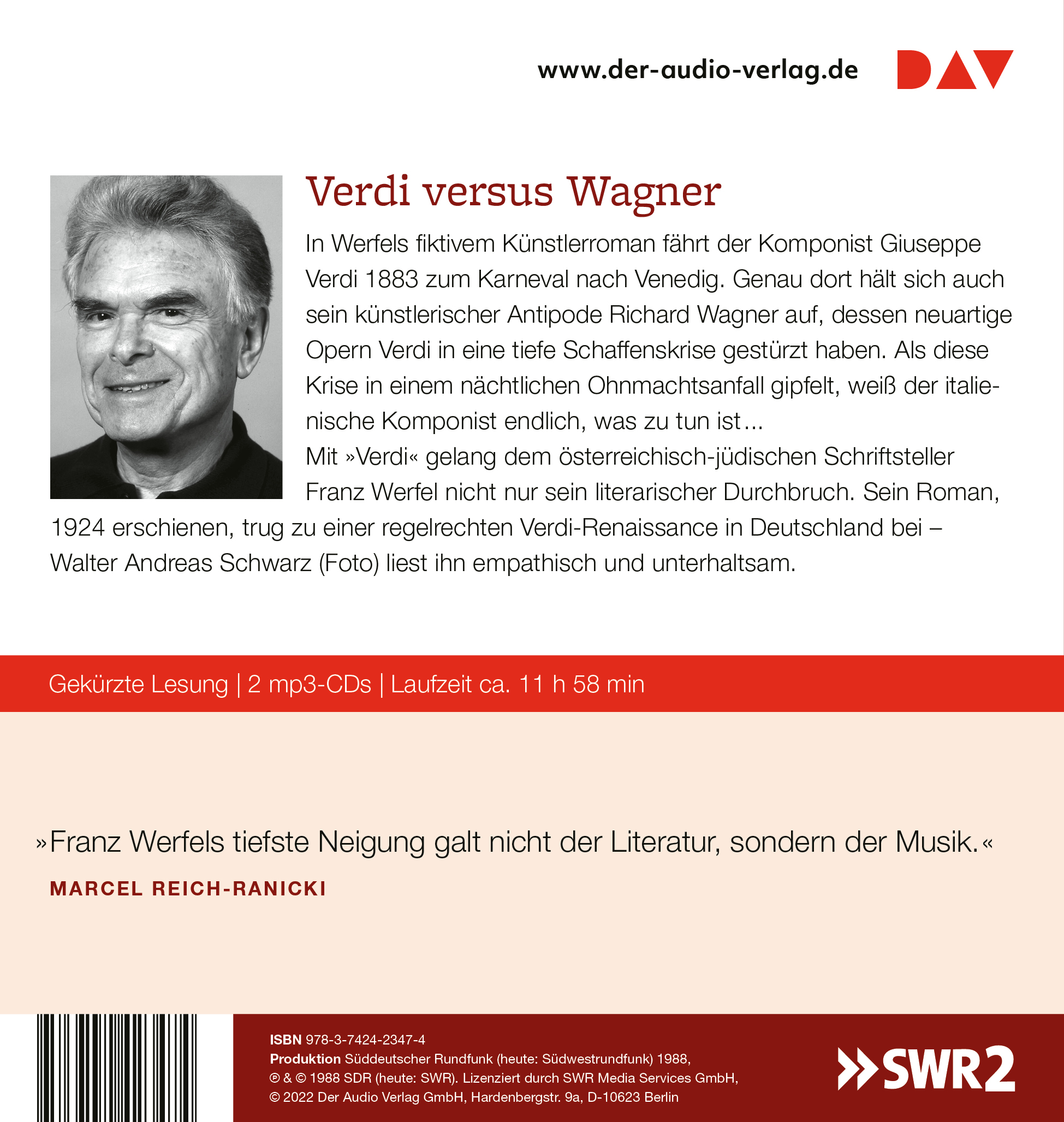Mit »Verdi« gelang dem österreichisch-jüdischen Schriftsteller Franz Werfel nicht nur sein literarischer Durchbruch. Sein Roman, 1924 erschienen, trug zu einer regelrechten Verdi- Renaissance in Deutschland bei.