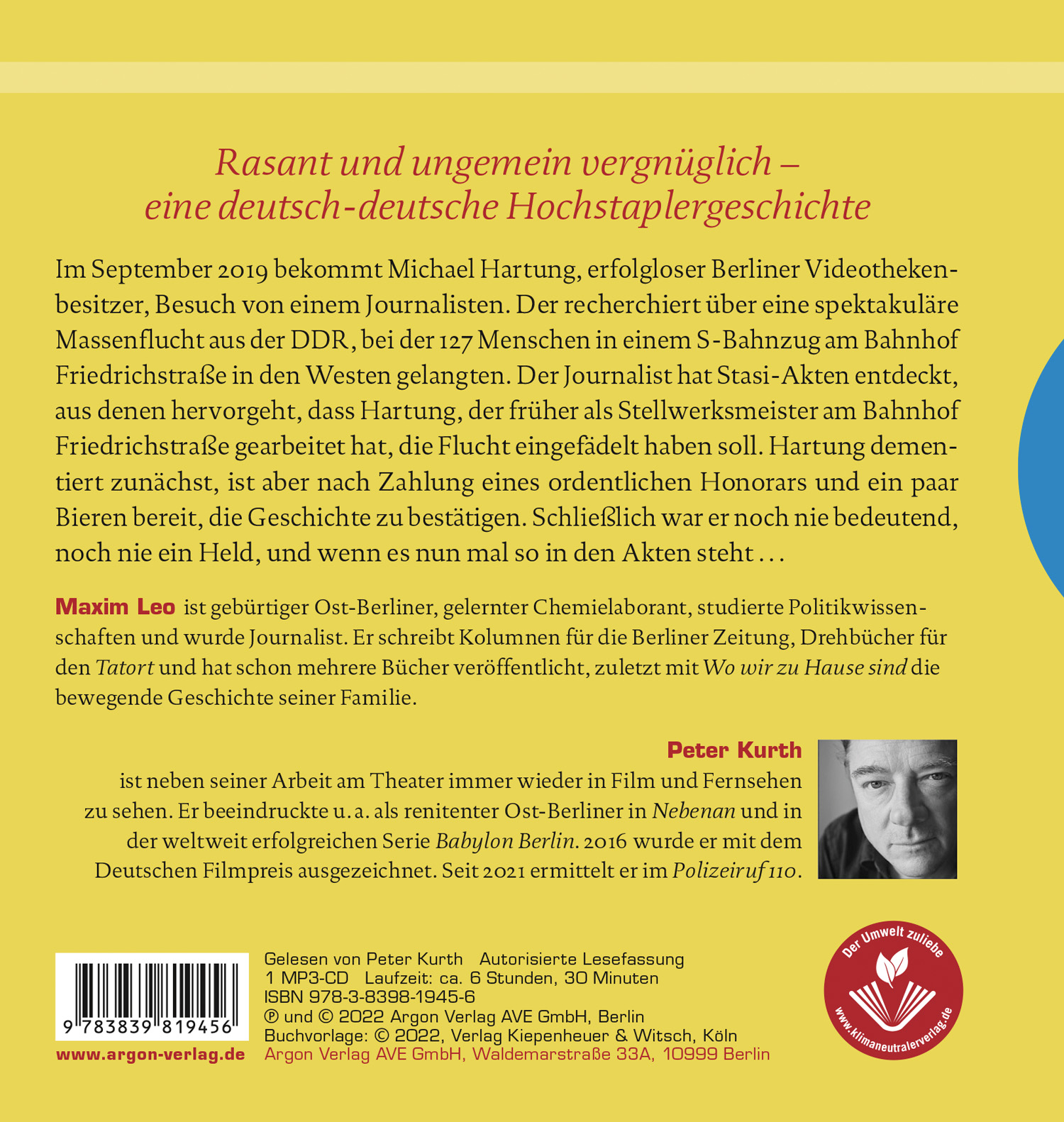 »Dem Autor und Politikwissenschaftler Maxim Leo ist eine witzige Geschichte über einen liebenswerten Antihelden gelungen, die der renommierte und mit vielen Preisen bedachte Schauspieler und Hörbuchsprecher Peter Kurth brillant wiedergibt.«