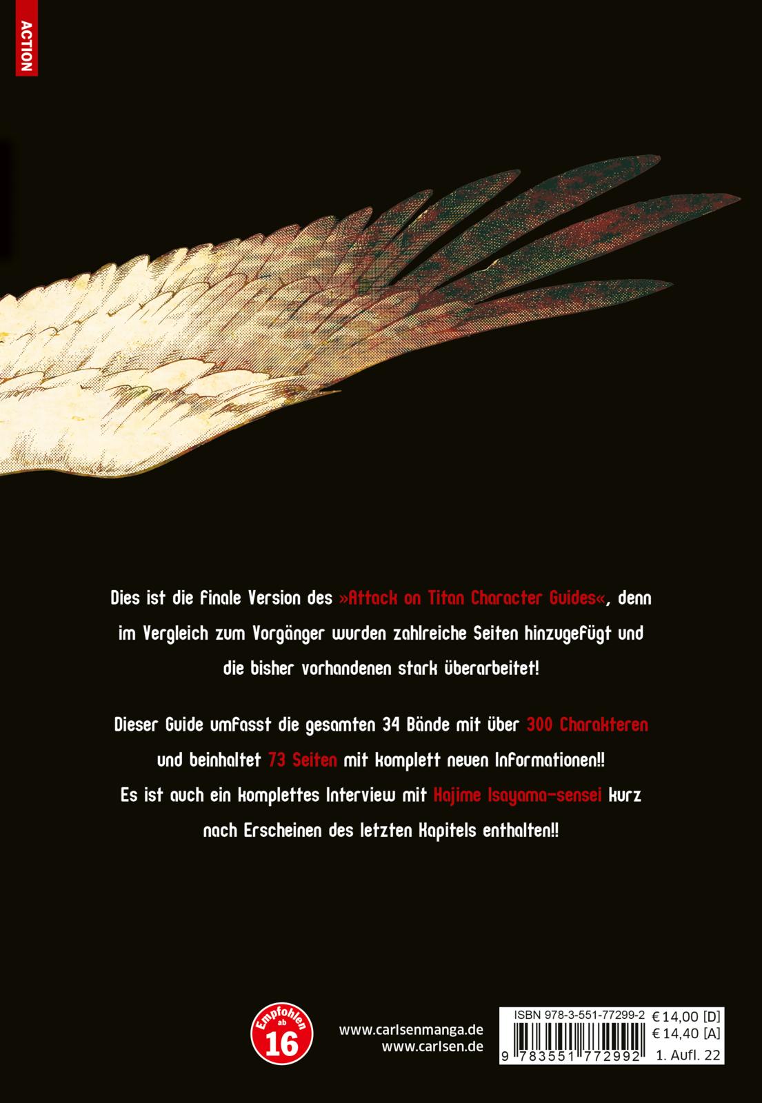 Dieser Guide umfasst die gesamten 34 Bände mit über 300 Charakteren und beinhaltet 73 Seiten mit komplett neuen Informationen!! Es ist auch ein spannendes Interview mit Hajime Isayama-sensei kurz nach Erscheinen des letzten Kapitels enthalten!!