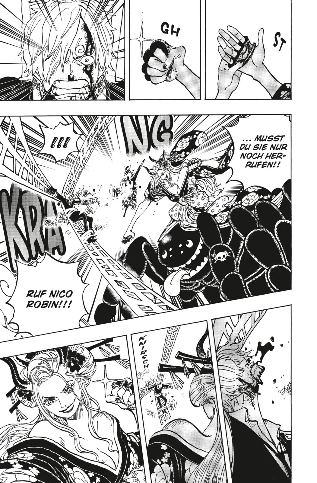 Auf dem Dach der Kuppel haben sich die Hauptdarsteller zum Showdown versammelt. Ruffy und seine Freunde stellen sich dem Kampf gegen Kaido und Mom. Haben sie gegen diese übermächtige Allianz überhaupt eine Chance?! Welche Zukunft wartet am Ende dieses ultimativen Aufeinandertreffens?! Onigashima wird von einem verheerenden Erdbeben erschüttert!!