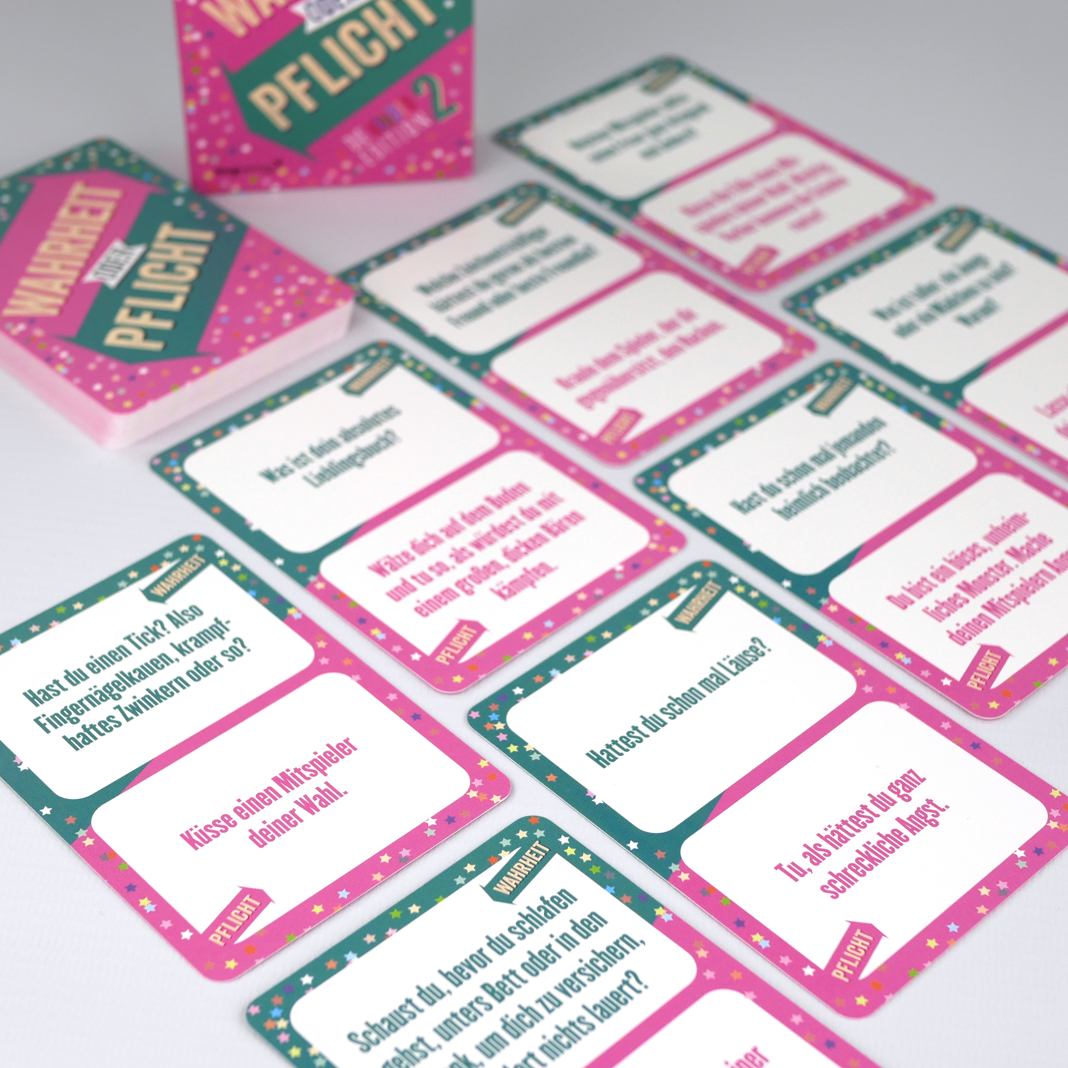 Nach dem Riesenerfolg des ersten Teils versammelt dieses Kartenspiel mehr als 60 neue, noch unterhaltsamere Fragen und Aufgaben. Die witzigen Pflichtaufgaben sorgen für jede Menge Lacher. Und durch die außergewöhnlichen Fragen lernt man seine Freund*innen oder Klassenkamerad*innen (noch) besser kennen. So wird jeder Kindergeburtstag zum großen Spaß!