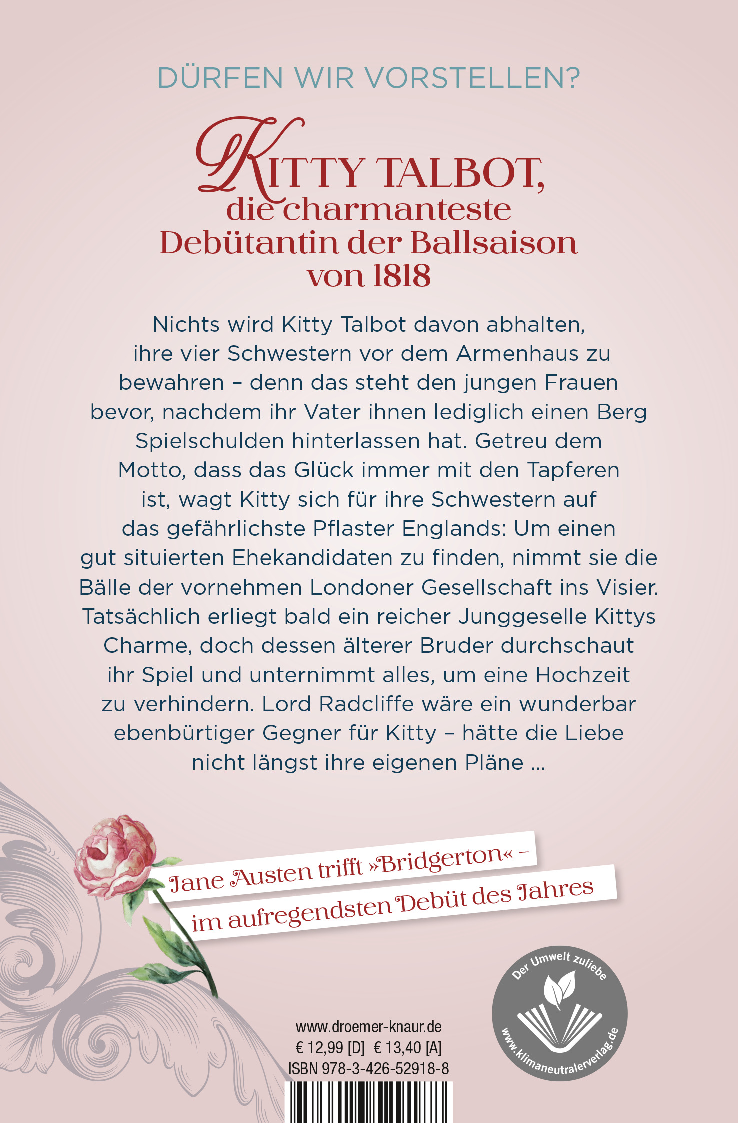Also wagt Kitty sich für ihre Schwestern auf das gefährlichste Schlachtfeld im England des Jahres 1818: die Bälle der Lords und Ladys in London. Obwohl die unkonventionelle Kitty sich mindestens so viele Feinde wie Freunde macht, erliegt bald ein märchenhaft reicher Junggeselle ihrem Charme.