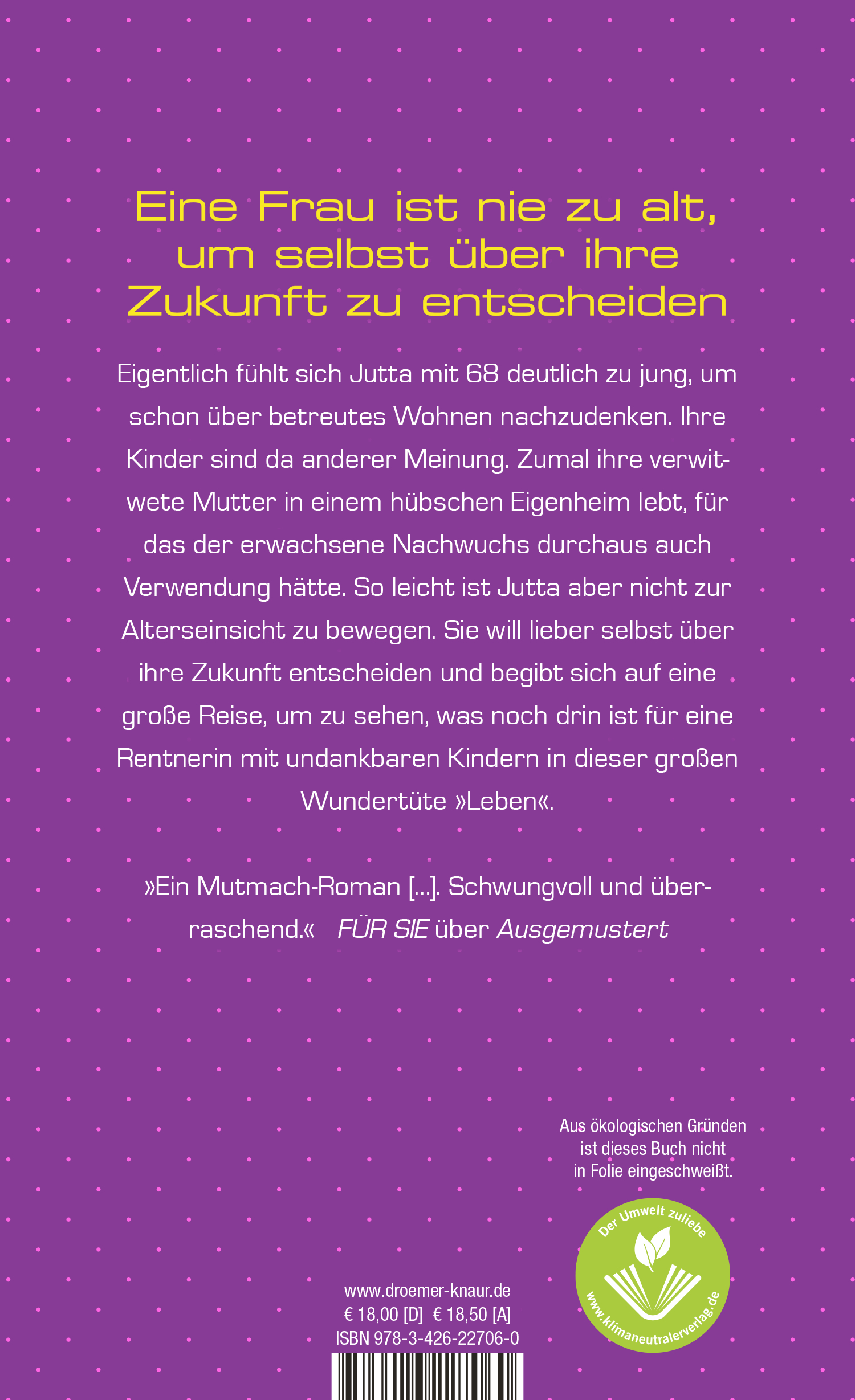 Was tut eine 68-Jährige, wenn die Kinder ans Eigenheim wollen? Sie startet nochmal durch! Der nächste Genie-Streich der Kultautorin: empathisch, lebensklug, echt . Mit Herz, Humor und Heimvorteil: Im humorvollen Roman von Susanne Fröhlich zeigt Mama ihren Kindern, wie altersgerechtes Wohnen geht! Bestseller-Autorin Susanne Fröhlich ist auch abseits ihrer Andrea-Schnidt-Romane eine Garantin für empathischen, aus dem Leben gegriffenen Humor.