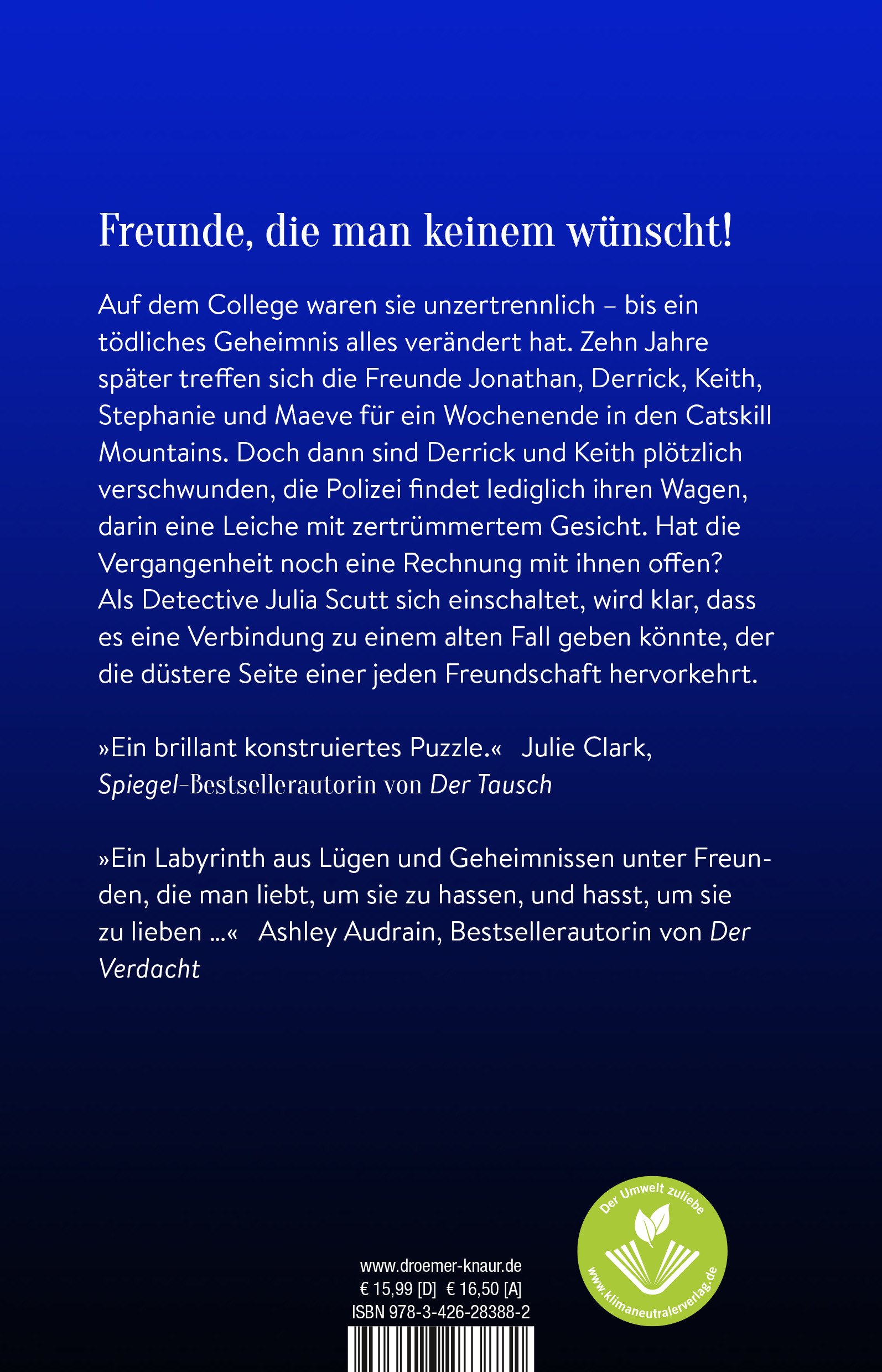 Freunde, die man keinem wünscht - der neue Thriller der New York Times-Bestsellerautorin! Fünf beste Freunde, ein tödliches Geheimnis und ein Wochenende der Wahrheit: Kimberly McCreights Thriller ist ebenso hinterhältig wie hochspannend und unvorhersehbar. Trickreich und in hohem Tempo führt die »New York Times«-Bestseller-Autorin Kimberly McCreight durch einen Thriller, den man kaum aus der Hand legen kann.