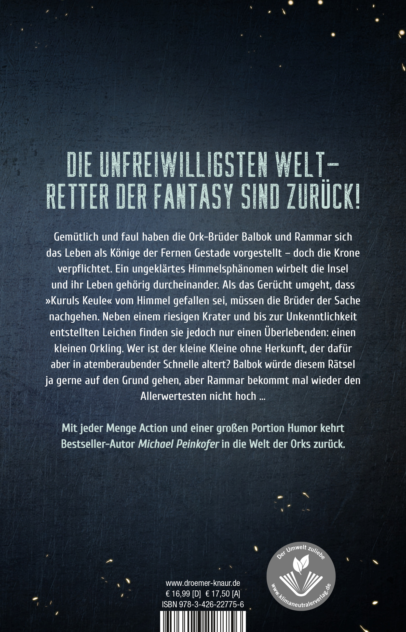 Die unfreiwilligsten Welt-Retter der Fantasy bestreiten ihr 6. Abenteuer. Was für ein Spaß - die heldenhaftesten Bösewichte der Fantasy sind zurück! Mit jeder Menge Action und einer großen Portion Humor kehrt Michael Peinkofer auf die Erdwelt zurück. Das 6. Abenteuer der Ork-Brüder ist auch als Einstieg in die High-Fantasy-Saga geeignet.