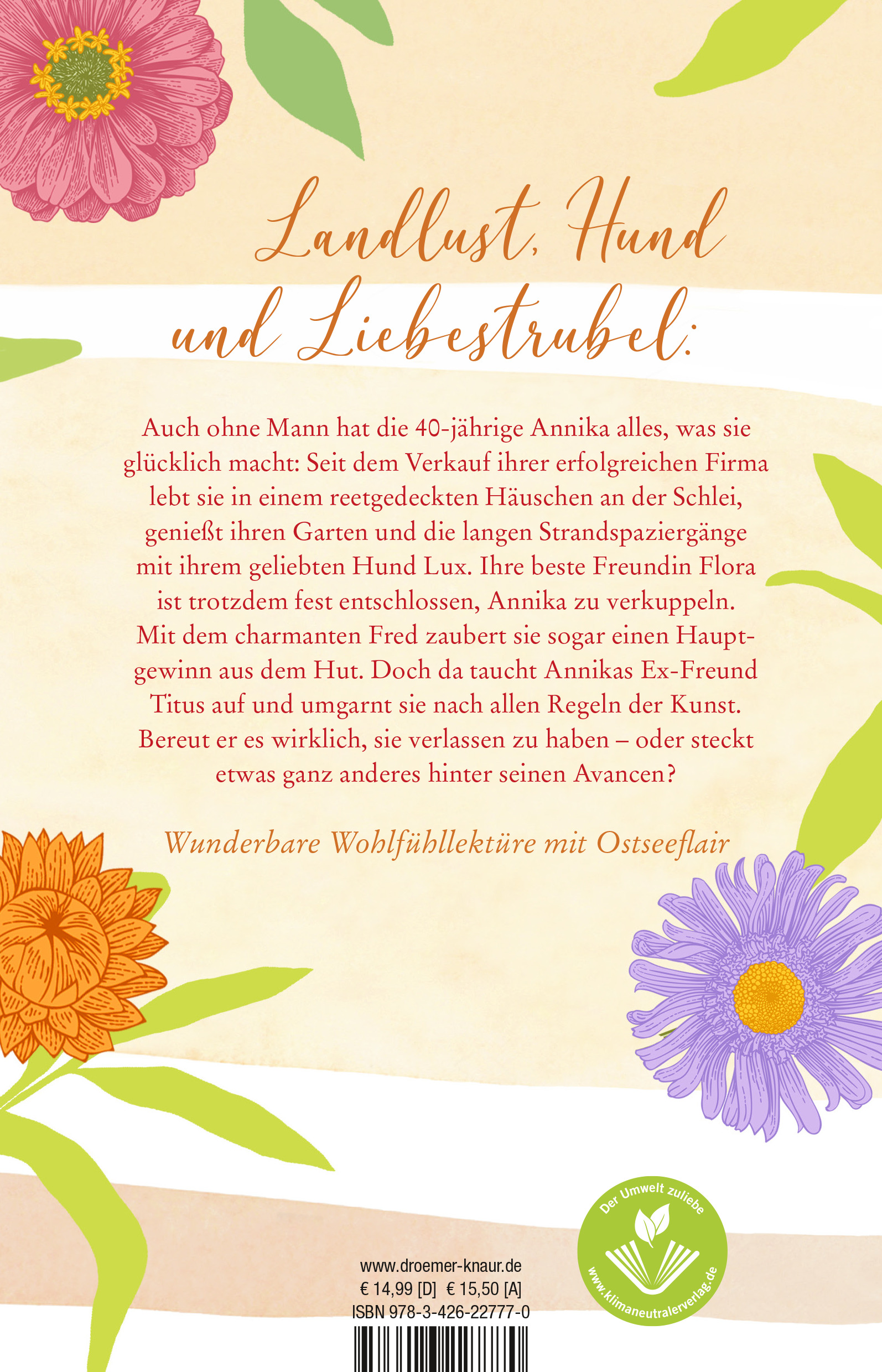 Auch ohne Mann hat die 40-jährige Annika alles, was sie glücklich macht: Seit dem Verkauf ihrer erfolgreichen IT-Firma lebt sie in einem reetgedecktes Häuschen an der Schlei und genießt ihren blühenden Garten und die langen Strand-Spaziergänge an der Ostsee mit ihrem geliebten Hund Lux. Annikas beste Freundin Flora, die gerade ihr eigenes Deli eröffnet hat, ist trotzdem fest entschlossen, Annika endlich zu verkuppeln. Mit dem charmanten Fred zaubert sie sogar einen echten Hauptgewinn aus dem Hut. Prompt taucht auch noch Annikas Ex-Freund Titus auf und umgarnt sie nach allen Regeln der Kunst. Bereut er es wirklich so sehr, sie verlassen zu haben - oder steckt etwas ganz anderes hinter seinen Avancen?