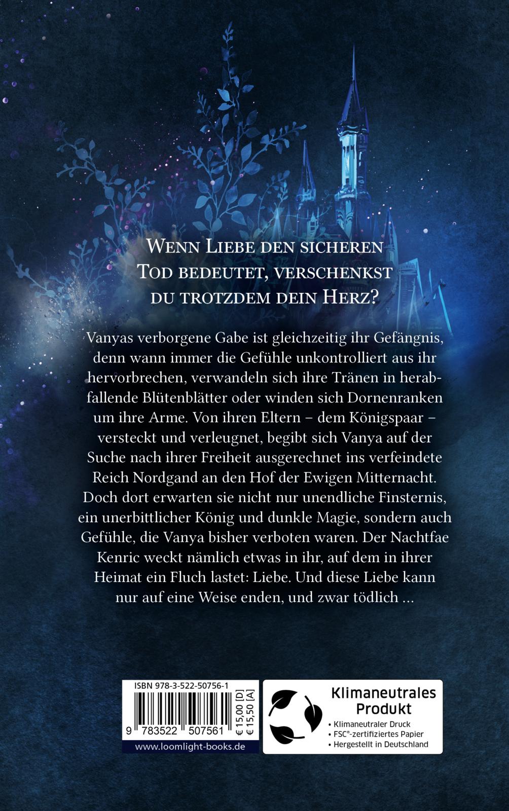 Vanyas verborgene Gabe ist gleichzeitig ihr Gefängnis, denn wann immer die Gefühle unkontrolliert aus ihr hervorbrechen, verwandeln sich ihre Tränen in herabfallende Blütenblätter oder winden sich Dornenranken um ihre Arme. Von ihren Eltern - dem Königspaar - versteckt und verleugnet, begibt sich Vanya auf der Suche nach ihrer Freiheit ausgerechnet ins verfeindete Reich Nordgand an den Hof der Ewigen Mitternacht. Doch dort erwarten sie nicht nur unendliche Finsternis, ein unerbittlicher König und dunkle Magie, sondern auch Gefühle, die Vanya bisher verboten waren. Der Nachtfae Kenric weckt nämlich etwas in ihr, auf dem in ihrer Heimat ein Fluch lastet: Liebe. Und diese Liebe kann nur auf eine Weise enden, und zwar tödlich ...