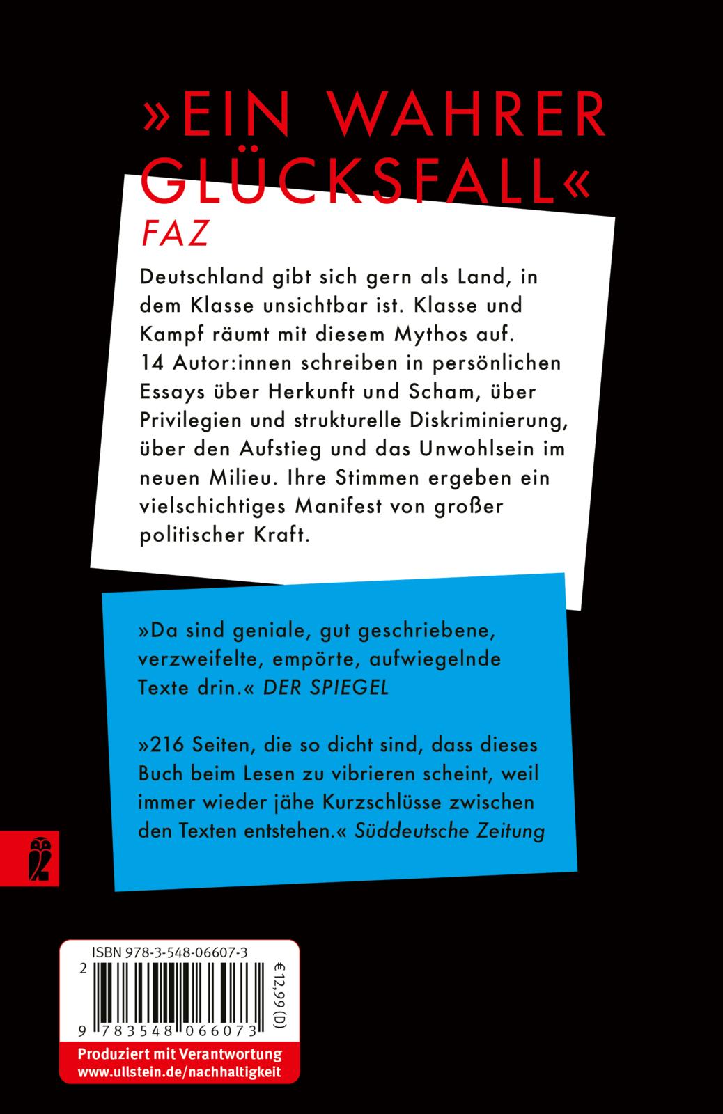 Deutschland gibt sich gerne als ein Land, in dem Klasse unsichtbar ist. In dem die Chancen auf Bildung und Wohlstand für alle gleich sind. Klasse und Kampf räumt mit diesem Mythos auf. 14 Autor*innen schreiben in persönlichen Essays über Herkunft und Scham, über Privilegien und strukturelle Diskriminierung, über den Aufstieg und das Unwohlsein im neuen Milieu. Zusammen ergeben ihre Stimmen ein vielschichtiges Manifest von großer politischer Kraft.