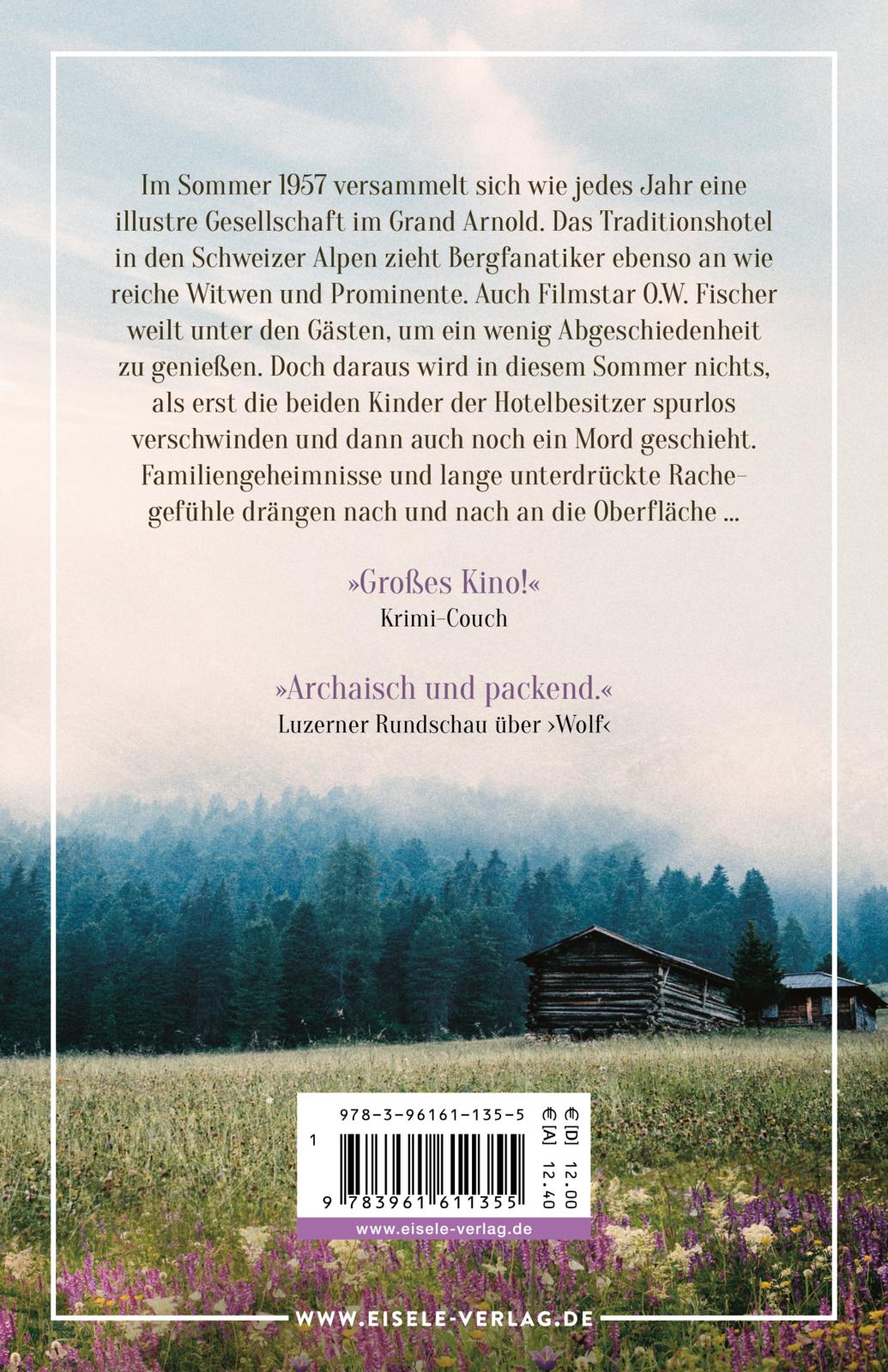 | Schlagworte | Bergkrimi • Eifersucht • Familiengeheimnis • Fünfzigerjahre • Grand Hotel • Heimatroman • Hotelkrimi • Hotelroman • Krimi • O.W. Fischer • Piz Palü • Schweiz • Schweizer Alpen • Schweiz-Krimi • Sommer • Sommerfrische • Urlaub • Urlaubskrimi |