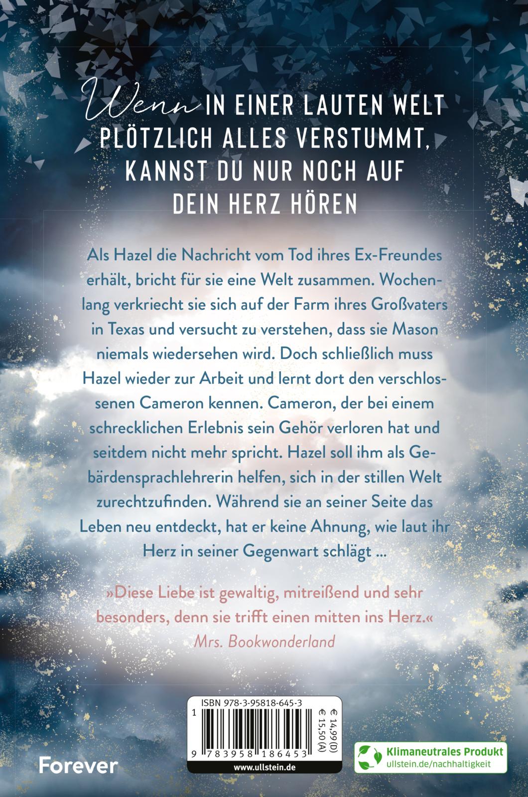 Als Hazel die Nachricht vom Tod ihres Ex-Freundes in Afghanistan erhält, bricht für sie eine Welt zusammen. Doch auf einmal ist da Cameron. Cameron, der als Kriegsveteran einen Bombenanschlag überlebt, durch die Explosion jedoch sein Gehör verloren hat und dem sie nun helfen soll, sich in der stillen Welt zurechtzufinden. Cameron, der nicht hören kann, wie laut ihr Herz in seiner Gegenwart schlägt ...