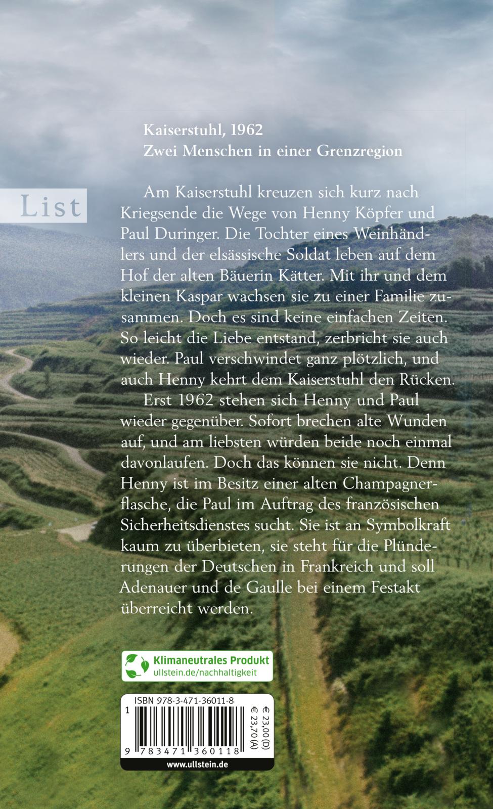 Die Nervosität kennt keine Grenzen. Der Elsässer Paul Dugard wird von höchster Stelle beauftragt, nach einer legendären Flasche Champagner zu suchen, die an Symbolkraft kaum zu überbieten ist. Sie steht stellvertretend für die Plünderungen der Deutschen im benachbarten Frankreich. Sein Weg führt zu Henny Köpfer, einer gestanden Freiburger Weinhändlerin.