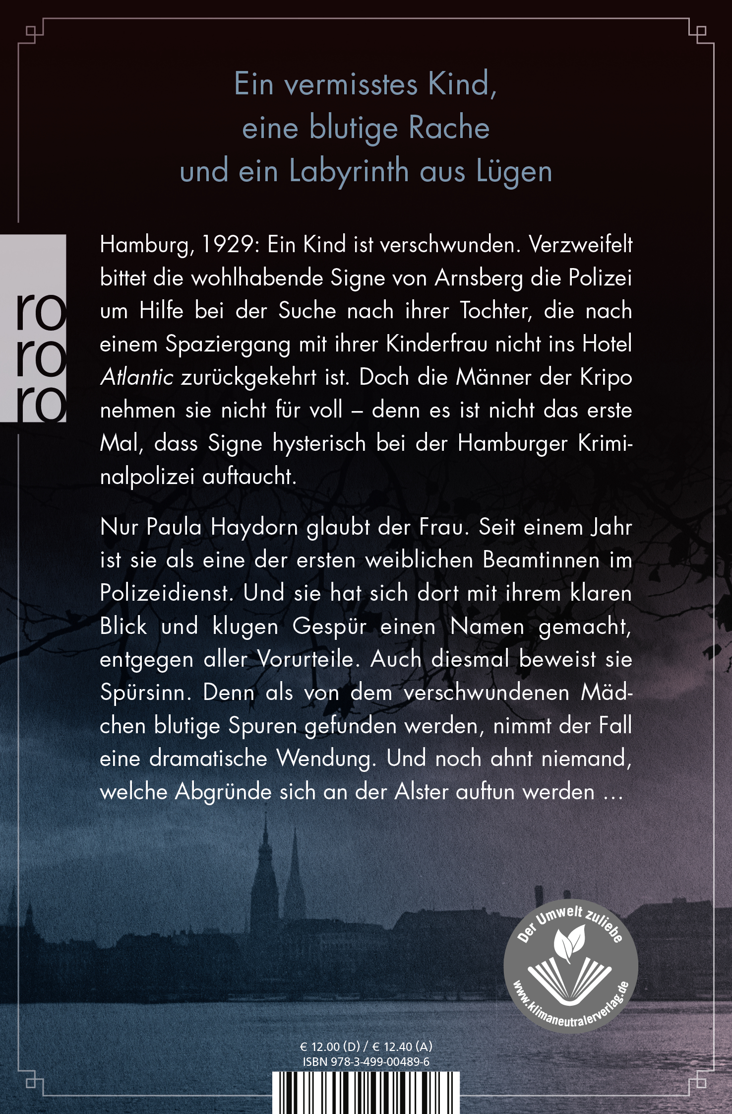 Nur Paula Haydorn glaubt der Frau. Seit einem Jahr ist sie als eine der ersten weiblichen Beamtinnen im Polizeidienst. Und sie hat sich dort mit ihrem klaren Blick und klugen Gespür einen Namen gemacht, entgegen aller Vorurteile. Auch diesmal beweist sie Spürsinn. Denn als von dem verschwundenen Mädchen blutige Spuren gefunden werden, nimmt der Fall eine dramatische Wendung. Und noch ahnt niemand, welche Abgründe sich an der Alster auftun werden ...