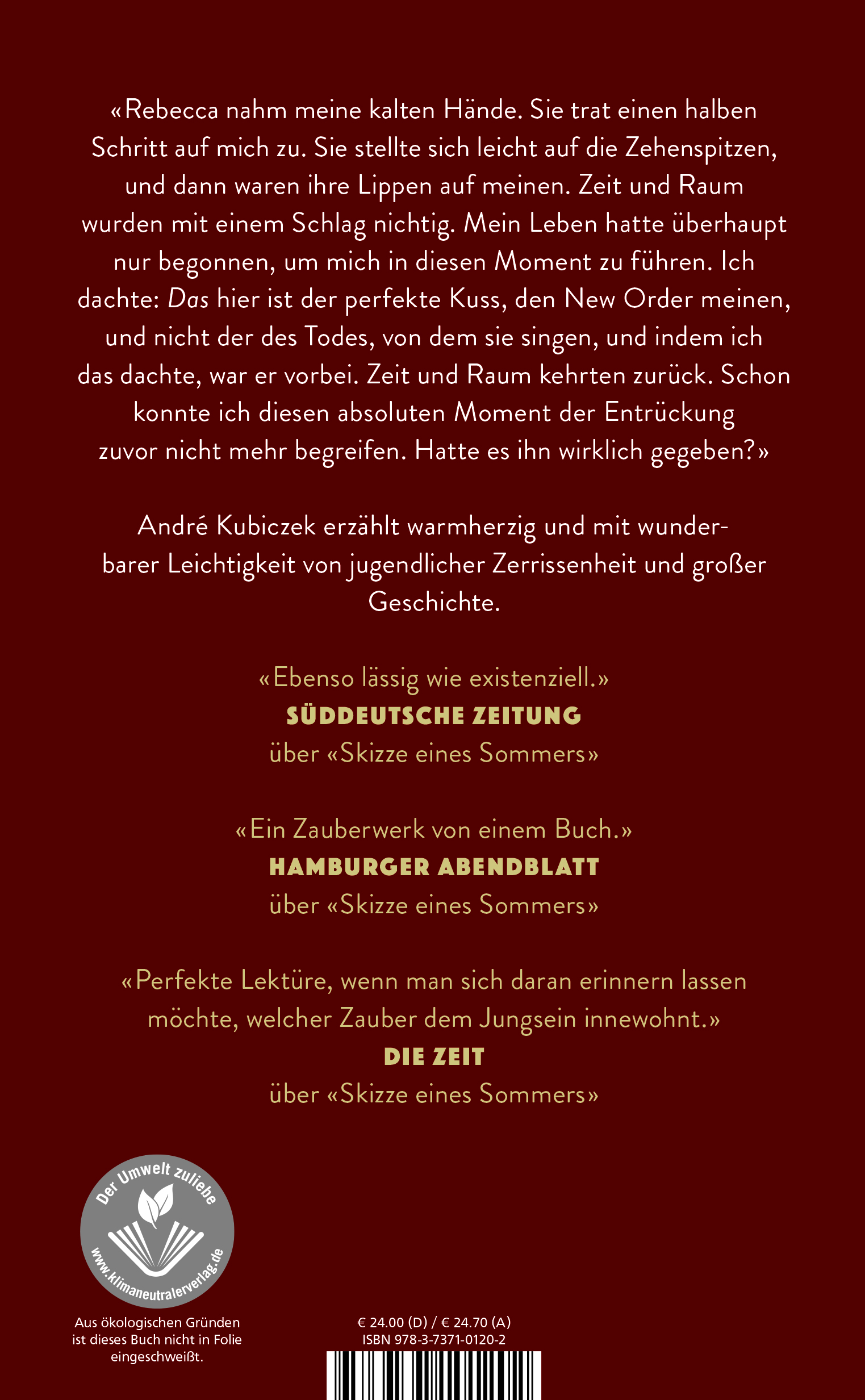 André Kubiczek, 1969 in Potsdam geboren, studierte Germanistik in Leipzig und Bonn. 2002 erschien sein hochgelobter Debütroman «Junge Talente», 2007 wurde er mit dem Candide-Preis ausgezeichnet. Nach «Skizze eines Sommers» (2016), «ein Zauberwerk von einem Buch» (Hamburger Abendblatt), das auf der Shortlist des Deutschen Buchpreises stand und das die «Süddeutsche Zeitung» «ebenso lässig wie existenziell» nannte, folgte zuletzt «Straße der Jugend» (2020). André Kubiczek lebt als freier Schriftsteller in Berlin.