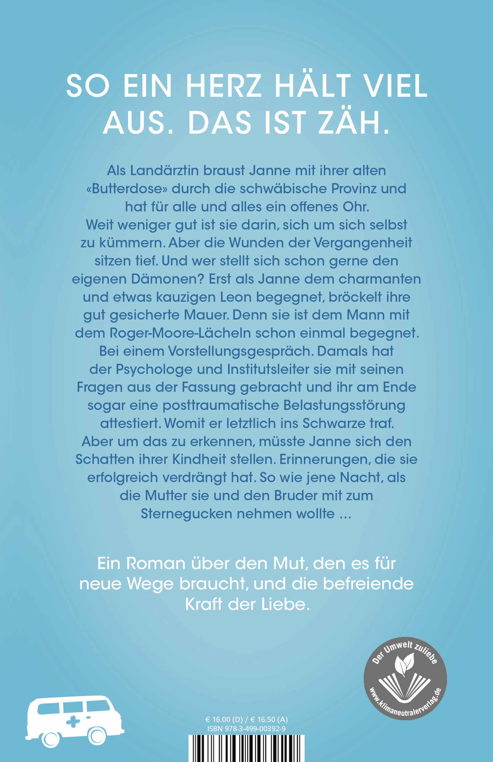 Als Landärztin braust Janne mit ihrer alten «Butterdose» durch die schwäbische Provinz und hat für alle und alles ein offenes Ohr. Weit weniger gut ist sie darin, sich um sich selbst zu kümmern. Aber die Wunden der Vergangenheit sitzen tief. Und wer stellt sich schon gerne den eigenen Dämonen? Erst als Janne dem charmanten und etwas kauzigen Leon begegnet, bröckelt ihre gut gesicherte Mauer. Denn sie ist dem Mann mit dem Roger-Moore-Lächeln schon einmal begegnet. Bei einem Vorstellungsgespräch. Damals hat der Psychologe und Institutsleiter sie mit seinen Fragen aus der Fassung gebracht und ihr am Ende sogar eine posttraumatische Belastungsstörung attestiert. Womit er letztlich ins Schwarze traf. Aber um das zu erkennen, müsste Janne sich den Schatten ihrer Kindheit stellen. Erinnerungen, die sie erfolgreich verdrängt hat. So wie jene Nacht, als die Mutter sie und den Bruder mit zum Sternegucken nehmen wollte ...
