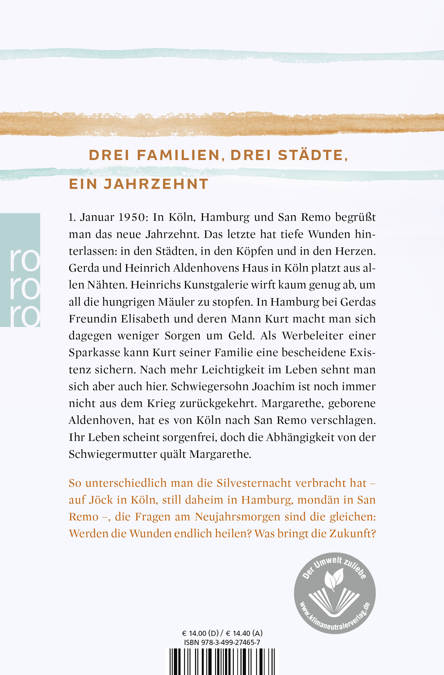 Der Auftakt der neuen zweibändigen Saga von Bestsellerautorin Carmen Korn. Drei Familien, drei Städte, ein Jahrzehnt. In ihrer neuen Saga lässt uns Carmen Korn tief eintauchen in die Nachkriegsjahrzehnte. Anhand von drei befreundeten Familien erzählt sie vom Neuanfang in Köln, Hamburg und San Remo, von großen und kleinen Momenten, von Festen, die gemeinsam gefeiert werden, von Herausforderungen, die zu meistern sind. Und vom Wunsch, aus dem Schweren etwas Gutes entstehen zu lassen, der Hoffnung, dass es noch nicht vorbei ist, das Leben und das Glück.
