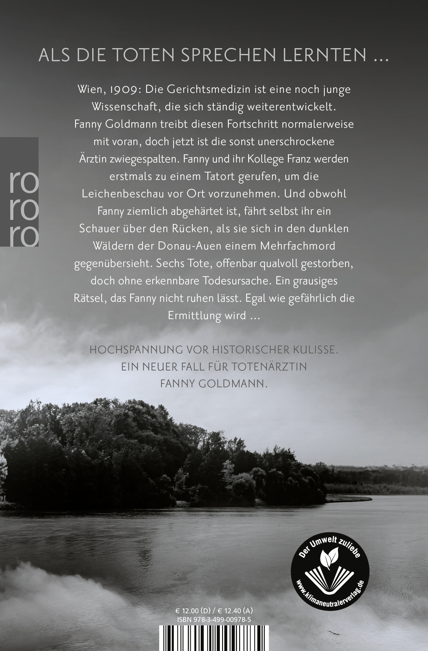 Wien, 1909: Die Gerichtsmedizin ist eine noch junge Wissenschaft, die sich ständig weiterentwickelt. Fanny Goldmann treibt diesen Fortschritt normalerweise mit voran, doch jetzt ist die sonst unerschrockene Ärztin zwiegespalten. Fanny und ihre Kollege Franz werden erstmals zu einem Tatort gerufen, um die Leichenbeschau vor Ort vorzunehmen. Und obwohl Fanny ziemlich abgehärtet ist, fährt selbst ihr ein Schauer über den Rücken, als sie sich in den dunklen Wäldern der Donauauen einem Mehrfachmord gegenübersieht. Sechs Tote, offenbar qualvoll gestorben, doch ohne erkennbare Todesursache. Ein grausiges Rätsel, das Fanny nicht ruhen lässt. Egal wie gefährlich die Ermittlung wird ...