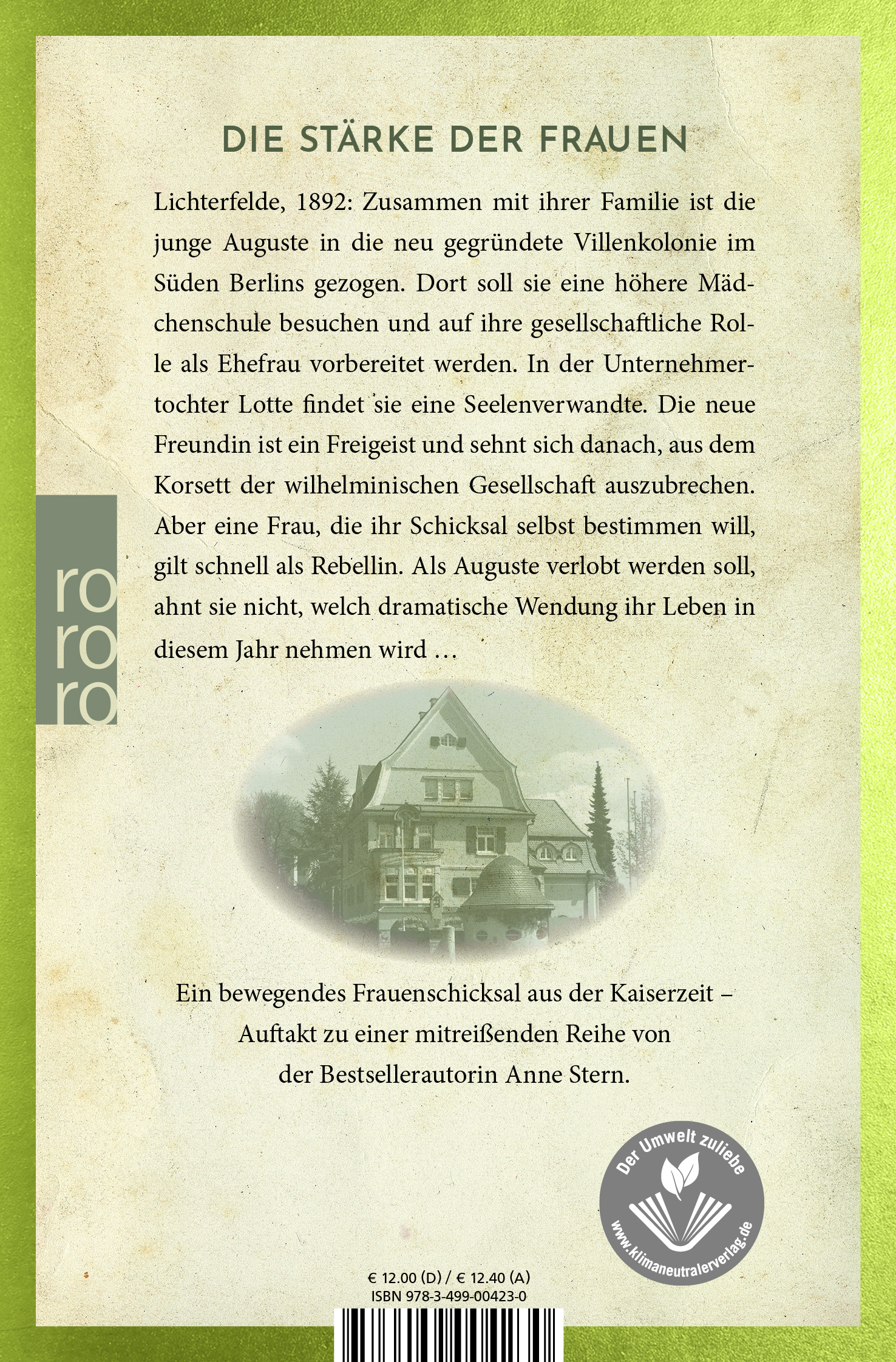 Lichterfelde bei Berlin, 1892: Als die junge Auguste mit ihrer Familie in die neugegründete Villenkolonie am Karlsplatz einzieht, ahnt sie nicht, welche dramatische Wendung ihr Leben nehmen wird. In der Krahmerschen Schule für höhere Töchter trifft sie auf die Unternehmerstochter Lotte.