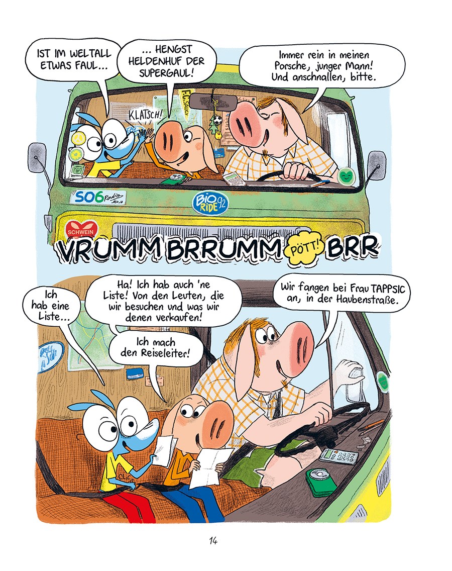 Ramonos Onkel ist Lebensmittelhändler auf dem Lande. Einmal im Monat kommt er in die Stadt, um seine guten Bio-Produkte zu verkaufen. Und heute nimmt er Ramono und Ariol mit! Ob in Altersheim oder Gutshaus, überall warten Kund:innen. Und Süßigkeiten für die Jungs! Doch dann gerät alles außer Kontrolle. Erst entdecken Ariol und Ramono hinten im Transporter zwei blinde Passagiere. Und plötzlich werden sie auch noch verfolgt... aber von wem? Das dicke Ende: Nach einem Autounfall landen alle auf der Polizeiwache. Auweia!Endlich gibt es wieder eine lange Geschichte um unseren kleinen blauen Lieblingsesel mit der runden Brille und seinen ferkeligen Freund. Ein großes Abenteuer voller Spannung, Spaß und frischem Gemüse.