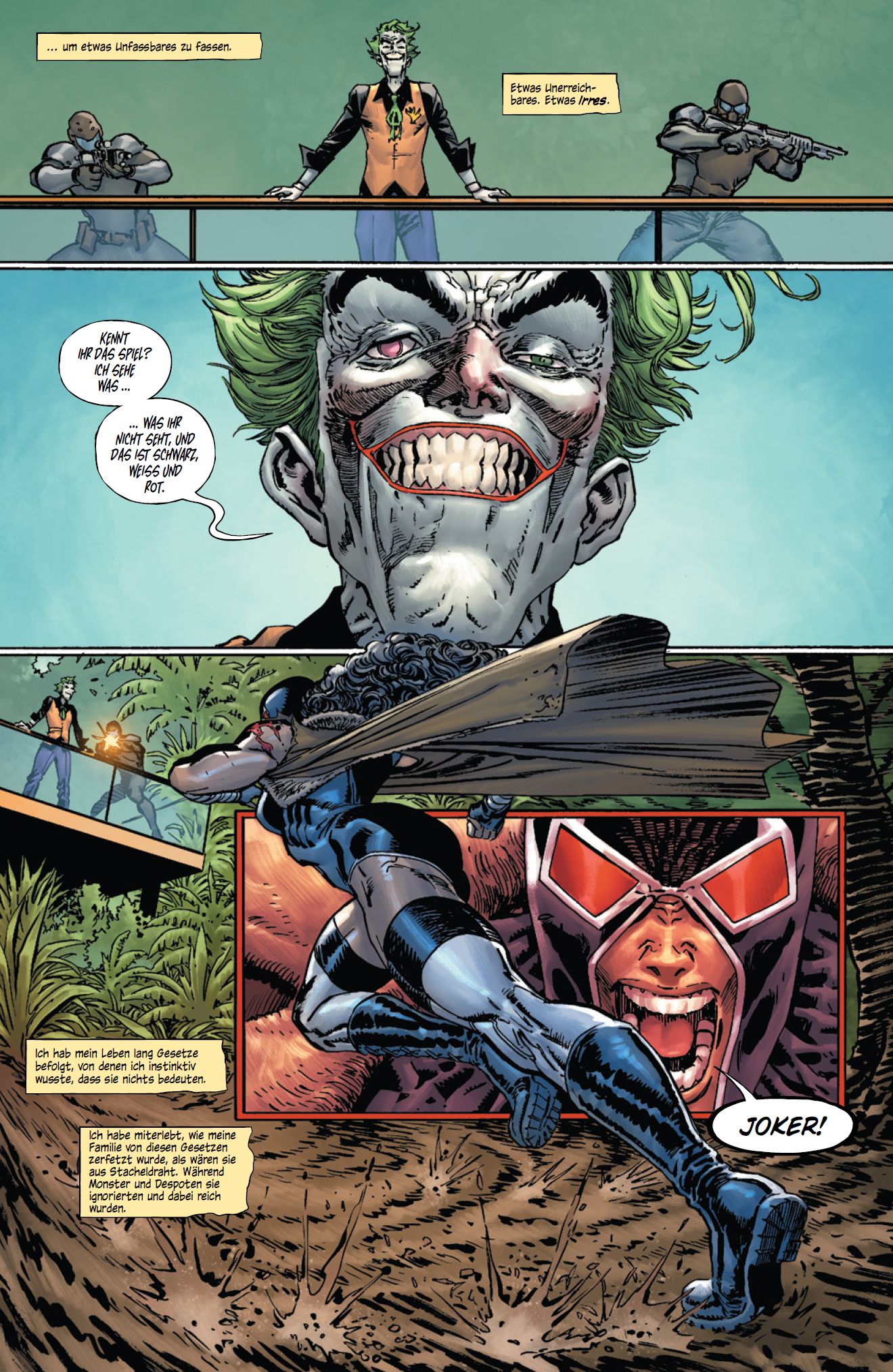 JÄGER DES CLOWNS von Christian Endres Der irre Superverbrecher Joker, seit Ewigkeiten der skrupellose Erzfeind von Batman, ist weit über die Grenzen des Comics bekannt. Er debütierte 1940 gleich in zwei Storys in USBATMAN 1. In jüngerer Vergangenheit überzog der Clownprinz des Verbrechens Gotham City im Joker War mit Krieg. Die Konsequenzen für den Mitternachtsdetektiv waren gewaltig: Bruce Wayne verlor einen Großteil seiner früheren Ressourcen, außerdem wurde der Ex-Cop Christopher Nakano, der einen tiefen Groll gegen Batman und alle selbst ernannten maskierten Rächer hegt, zu Gothams neuem Bürgermeister gewählt – und erklärte den Dunklen Ritter zum Verbrecher, den die Polizei nun jagt. Unterstützt wird Batman von Oracle, bei der es sich um die geniale Hackerin Barbara Gordon handelt, das frühere Batgirl. Ihr Vater James „Jim“ Gordon, der einst mit seiner Familie aus Chicago nach Gotham kam, unterstützt seit vielen Jahren den Ermittler im Zeichen der Fledermaus. Deshalb hatten Jim und Babs oft unter dem Joker zu leiden – man denke nur an den Klassiker BATMAN: THE KILLING JOKE von 1988, der den grünhaarigen Killerclown für immer prägte! In diesem Meisterwerk schoss der Joker Barbara nieder und entführte Jim, um ihn in einem Vergnügungspark zu foltern. Aber zurück in die Gegenwart: Vor Kurzem wurde der langjährige Police Commissioner Gordon vom Batman, der lacht in einen Diener des Bösen verwandelt, woraufhin zeitweise Harvey Bullock als Commissioner aushalf. Jim ist wieder er selbst, aber kein Cop mehr, zudem wurde sein Leben vom Tod seines Sohnes James Jr. erschüttert. Nach dem Event Batman: Death Metal begann mit dem INFINITE FRONTIER SPECIAL eine neue Ära für das DC-Universum. In jenem Comic schien es, als habe der Joker Hunderte Insassen und Angestellte der Irrenanstalt Arkham Asylum mit einer Variante seines Joker-Gases getötet – darunter sogar den legendären Batman-Gegner und Superschurken Bane von der karibischen Insel Santa Prisca. Und hier beginnt diese neue Serie …
