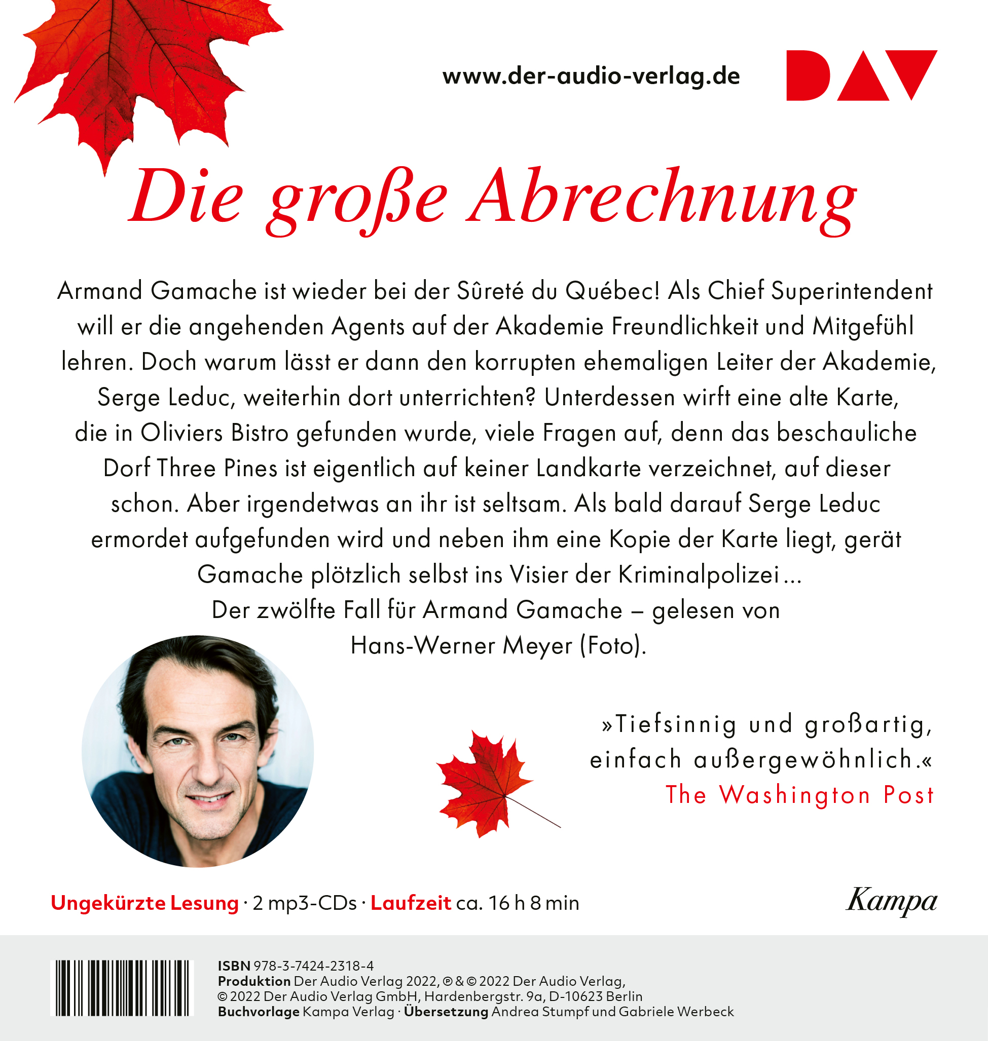 Hans-Werner Meyer, geboren 1964 in Hamburg, ist einer der bekanntesten deutschen Film- und Theaterschauspieler. Neben Engagements am Residenz-Theater in München und an der Berliner Schaubühne war er u.a. in »Der Baader Meinhof Komplex« zu sehen. Hans-Werner Meyer ist fester DAV-Sprecher für die Hörbücher von Louise Penny.
