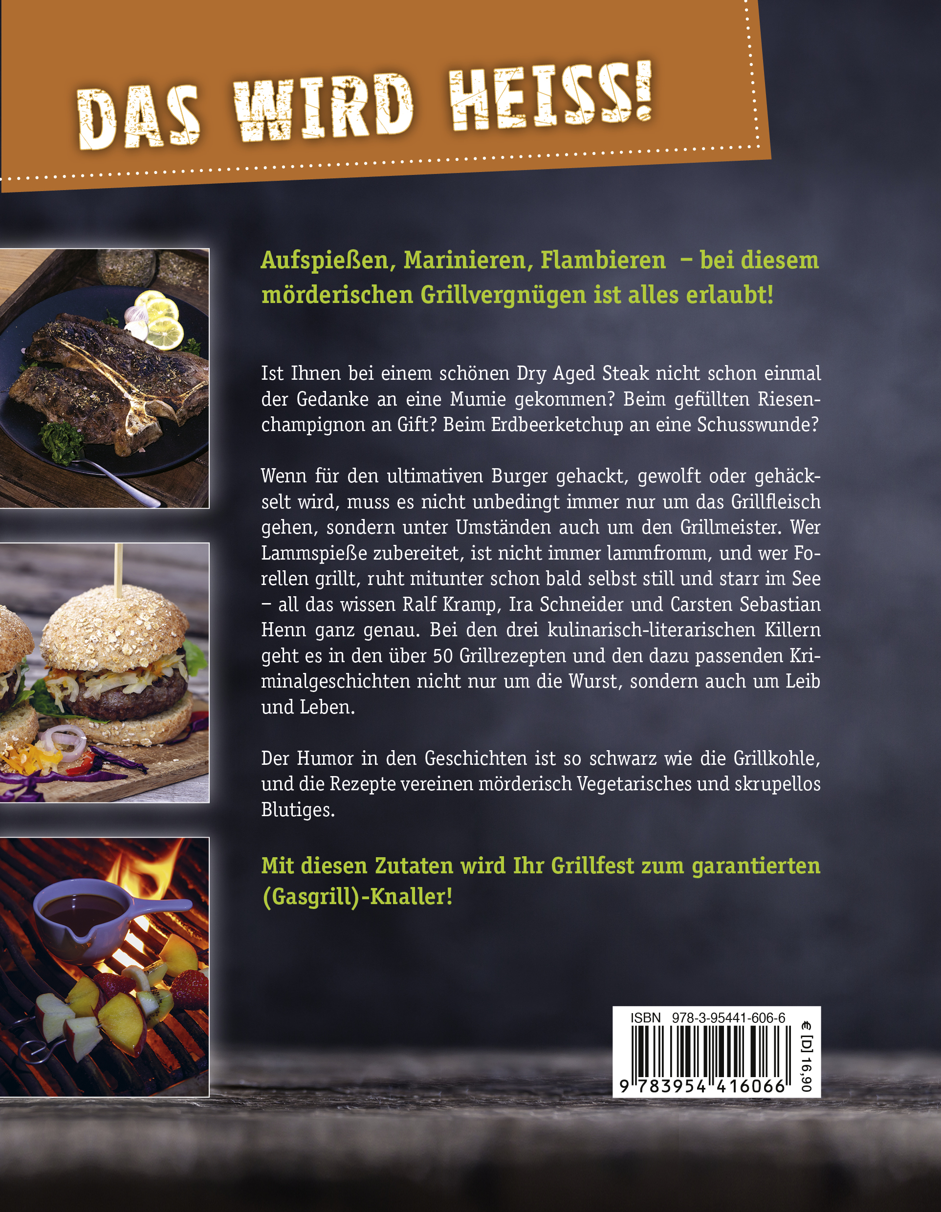 Das wird heiß!Aufspießen, Marinieren, Flambieren - bei diesem mörderischen Grillvergnügen ist alles erlaubt! Ist Ihnen bei einem schönen Dry Aged Steak nicht schon einmal der Gedanke an eine Mumie gekommen? Beim gefüllten Riesenchampignon an Gift? Beim Erdbeerketchup an eine Schusswunde?Wenn für den ultimativen Burger gehackt, gewolft oder gehäckselt wird, muss es nicht unbedingt immer nur um das Grillfleisch gehen, sondern unter Umständen auch um den Grillmeister. Wer Lammspieße zubereitet, ist nicht immer lammfromm, und wer Forellen grillt, ruht mitunter schon bald selbst still und starr im See - all das wissen Ralf Kramp, Ira Schneider und Carsten Sebastian Henn ganz genau. Bei den drei kulinarisch-literarischen Killern geht es in den über 50 Grillrezepten und den dazu passenden Kriminalgeschichten nicht nur um die Wurst, sondern auch um Leib und Leben.Der Humor in den Geschichten ist so schwarz wie die Grillkohle, und die Rezepte vereinen mörderisch Vegetarisches und skrupellos Blutiges. Mit diesen Zutaten wird Ihr Grillfest zum garantierten (Gasgrill)-Knaller!