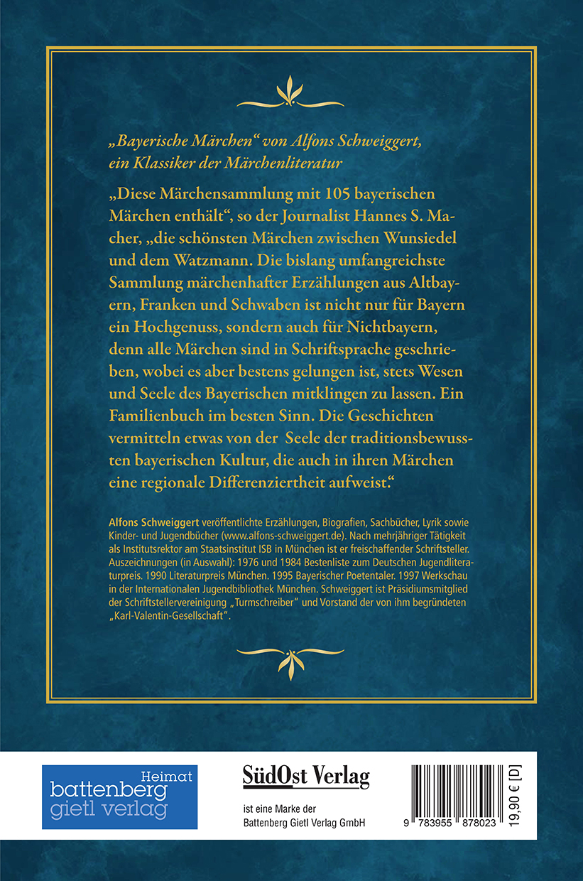 | Schlagworte | All-Age • Altbayern • bayerische Märchen • bayerischer Grimm • Bayerischer Wald • Bayern • Erzählung • Familienbuch • Fantasy • Franken • Geschichte • Kinder • Kultur • Legenden • Märchen • Märchensammlung • Niederbayern • Oberbayern • Oberpfalz • Sagen • Schwaben • Tradition • Volksmärchen • Vorlesen • Watzmann |