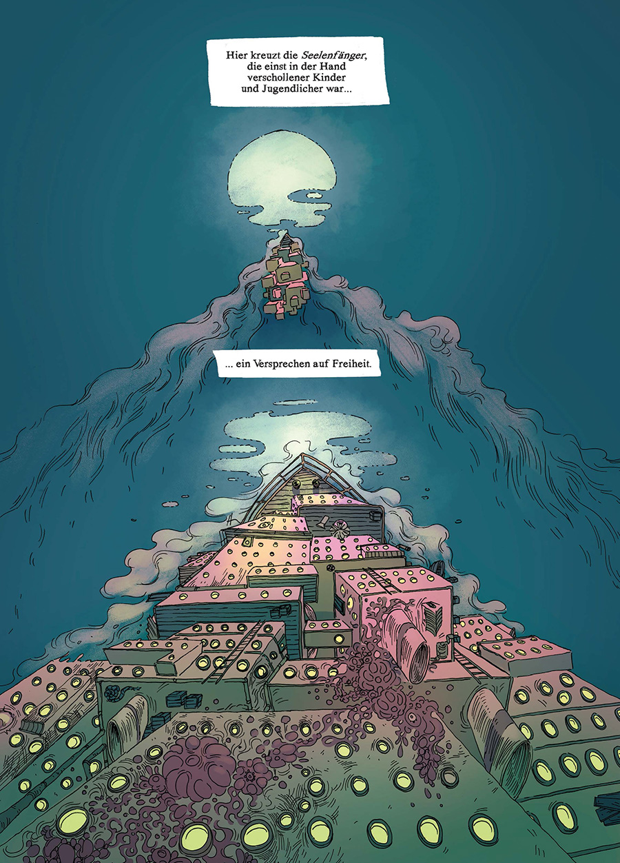 Auf der Rückseite der Wirklichkeit, jenseits der Nimmersee, erstreckt sich das ewig dunkle Nachtmeer, auf dem die gewaltige Seelenfänger kreuzt. Einst für die Rettung unglücklicher Kinder und Jugendlicher gebaut, ist sie längst in die Hände von Monstern gefallen... Auch die Brüder Leo und Felix sowie die Mädchen Asra und Chrissy verschlägt es auf das Schiff, doch sie entgehen den Monstern und verstecken sich in alten Versorgungsrohren, die das Schiff wie ein Labyrinth durchziehen. Ihre einzige Chance auf eine sichere Heimkehr sind die mysteriösen Weltenschlüssel, deren Aufenthaltsort niemand kennt. Sie machen sich auf die Suche, stets auf der Hut vor den grausamen Herren der Seelenfänger... Atmosphärisch dicht erzählen Boris Koch und Frauke Berger von einer Welt hinter der unseren und von dem, was unter der Oberfläche lauert. Abenteuer, Fantasy, Horror und persönliches Drama vermischen sich zu einer dunklen Geschichte von Monstern, ewiger Nacht und der Magie der Kindheit.