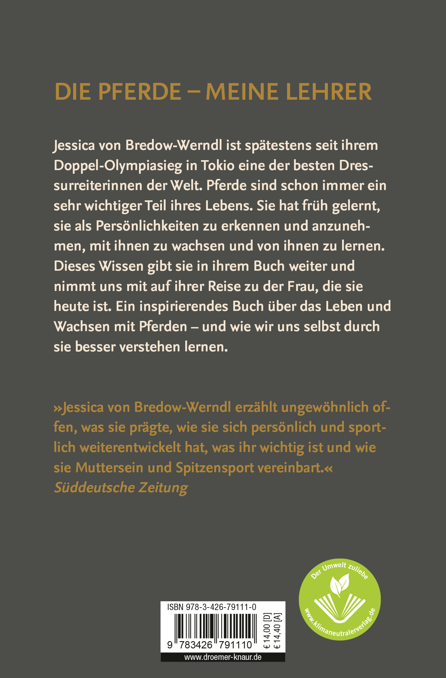 Jessica von Bredow-Werndl, geboren 1986, Doppel-Olympiasiegerin in Tokio 2021, ist eine der erfolgsreichsten Dressurreiterinnen der Welt. Gemeinsam mit ihrem Bruder Benjamin und einem versierten Team trainiert sie auf dem international renommierten Gut Aubenhausen und bildet dort Pferde und Reiter bis zu den höchsten Klassen in der Dressur aus. Mit ihrem Pferd Dalera erreichte Jessica von Bredow-Werndl bei den Europa-Meisterschaften 2019 in Rotterdam nach Gold mit dem Team mit einer persönlichen Bestleistung Rang drei und somit die Bronze-Medaille. Ihr bislang größter Erfolg ist der Gewinn der beiden Goldmedaillen in der Mannschafts- und in der Einzelwertung bei den Olympischen Spielen in Tokio 2021.