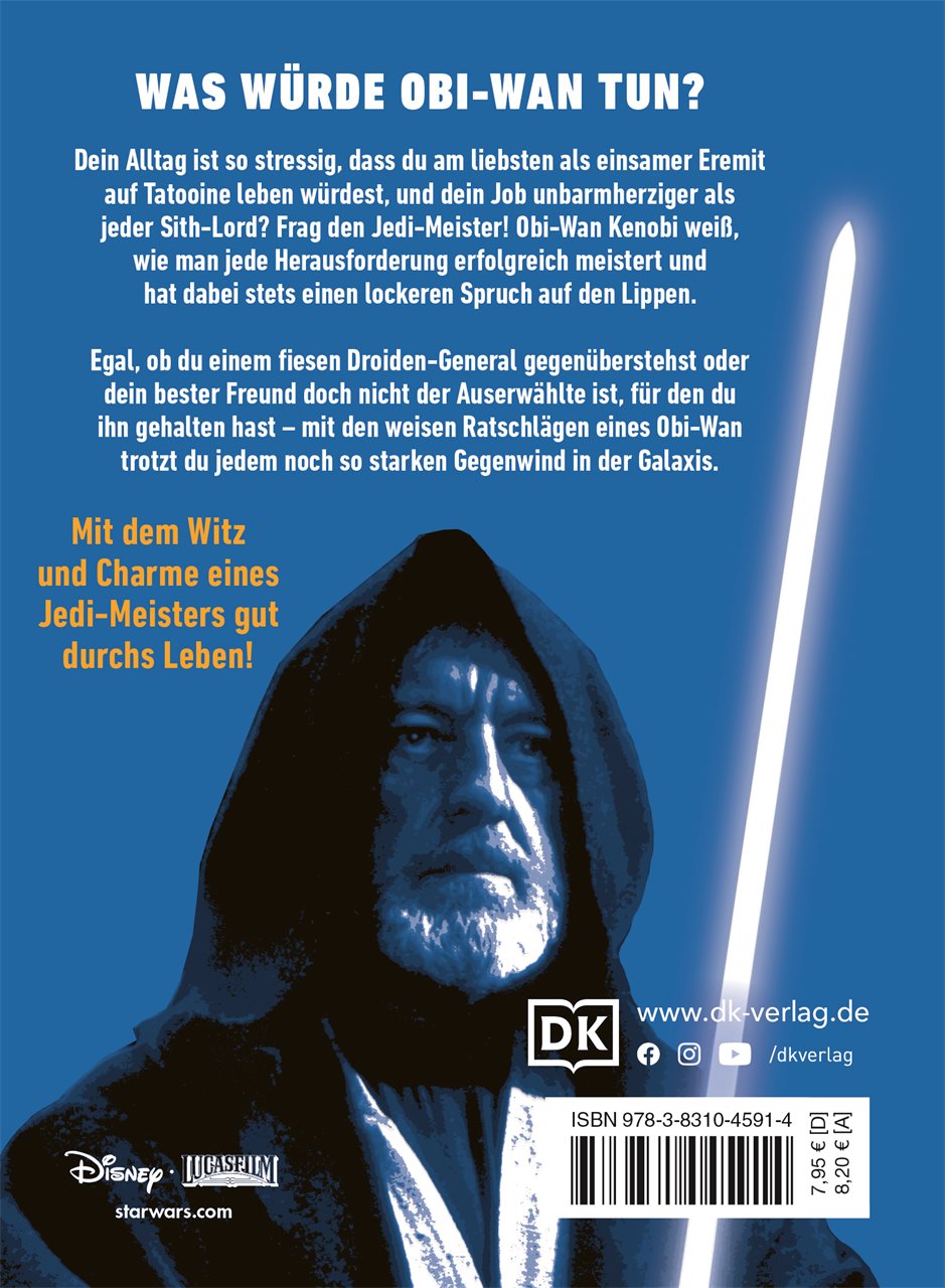 Obi-Wans Umgang mit finsteren Schurken, anstrengenden Schülern und galaktischen Krisen ist vorbildlich. Lächelnd, selbstsicher, mit kühlem Kopf und einem lockeren Spruch auf den Lippen geht er jedes Problem an, egal wie herausfordernd es auch sein mag. Jeder Ratschlag wird von einem passenden Star Wars(TM) Zitat begleitet und enthält viele unterhaltsame Anspielungen auf die Star Wars(TM) Filme.