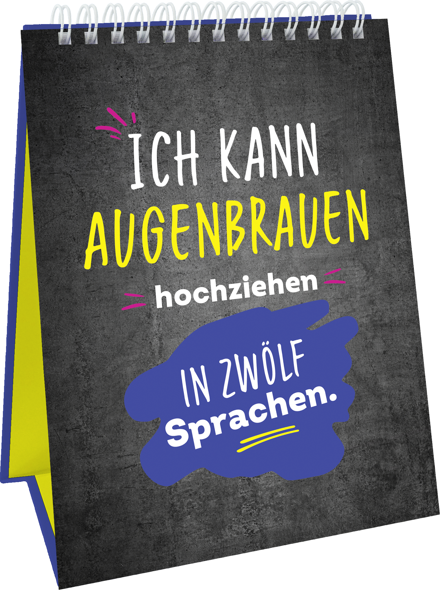 Dieser humorvolle Spiralaufsteller macht Schluss mit »nett« und »angepasst« und nimmt garantiert kein Blatt vor den Mund, wenn mal wieder ein neuer Montag in all seiner Alltagspracht graut: "Ich kann meinen Mund halten, wenn es sein muss. Aber die Untertitel kann man deutlich in meinem Gesicht lesen." Oder wie wäre es mit "Amor, gib mir einfach den Pfeil, den Rest mach ich selbst."