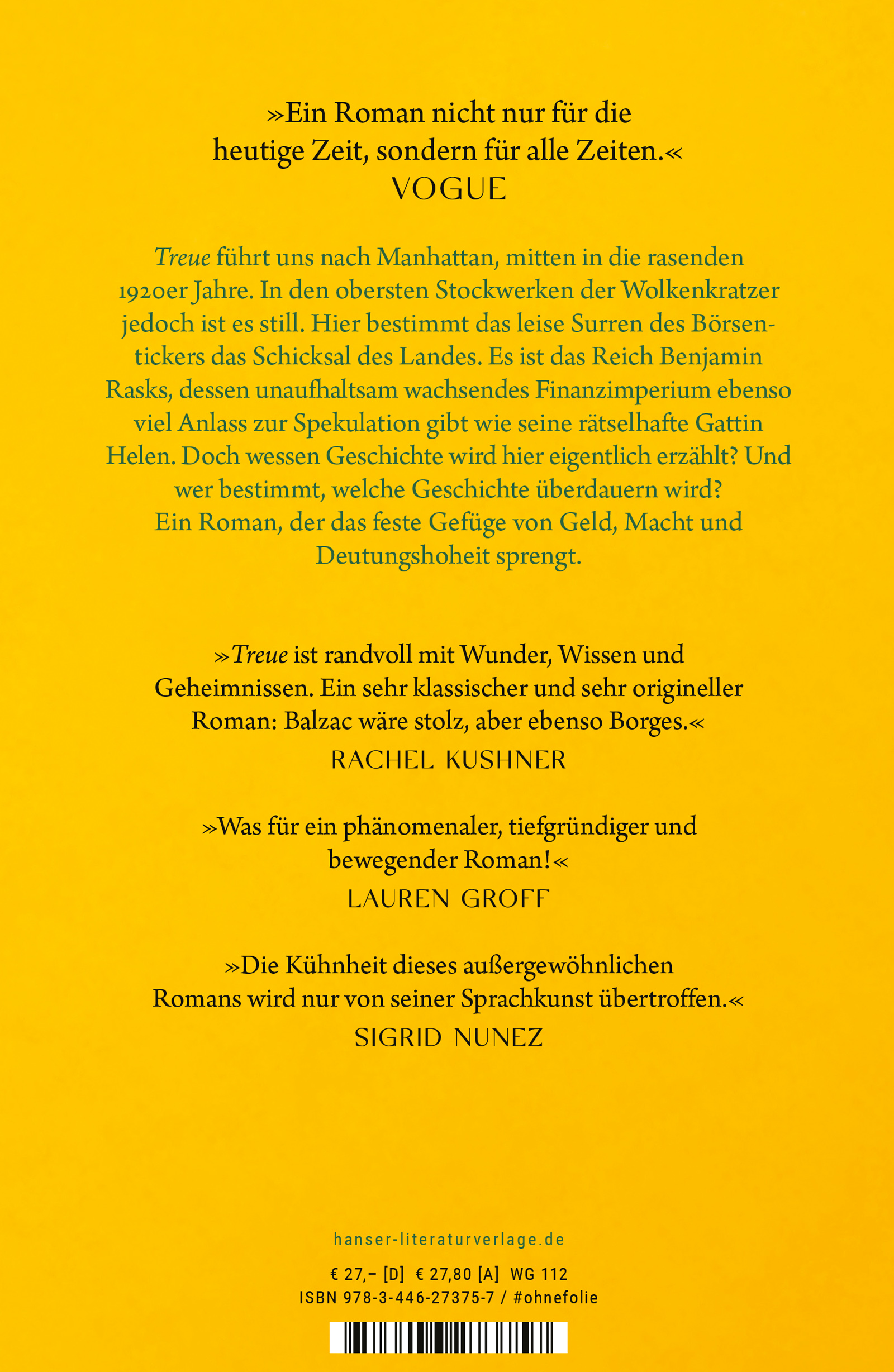 Hernan Diaz‘ vielschichtiger Roman dekonstruiert den amerikanischen Mythos von Männern, Macht und Reichtum und gipfelt in einer provokanten Geschichte der Emanzipation. "Treue" ist ein fulminantes Spiel mit dem Leser, eine vierteilige Matroschka, deren Kern den großen amerikanischen Mythos des Kapitals für immer verändert. Was als klassischer Roman über Macht und Männer beginnt, gipfelt in einer provokanten und hochmodernen Geschichte der Emanzipation.
