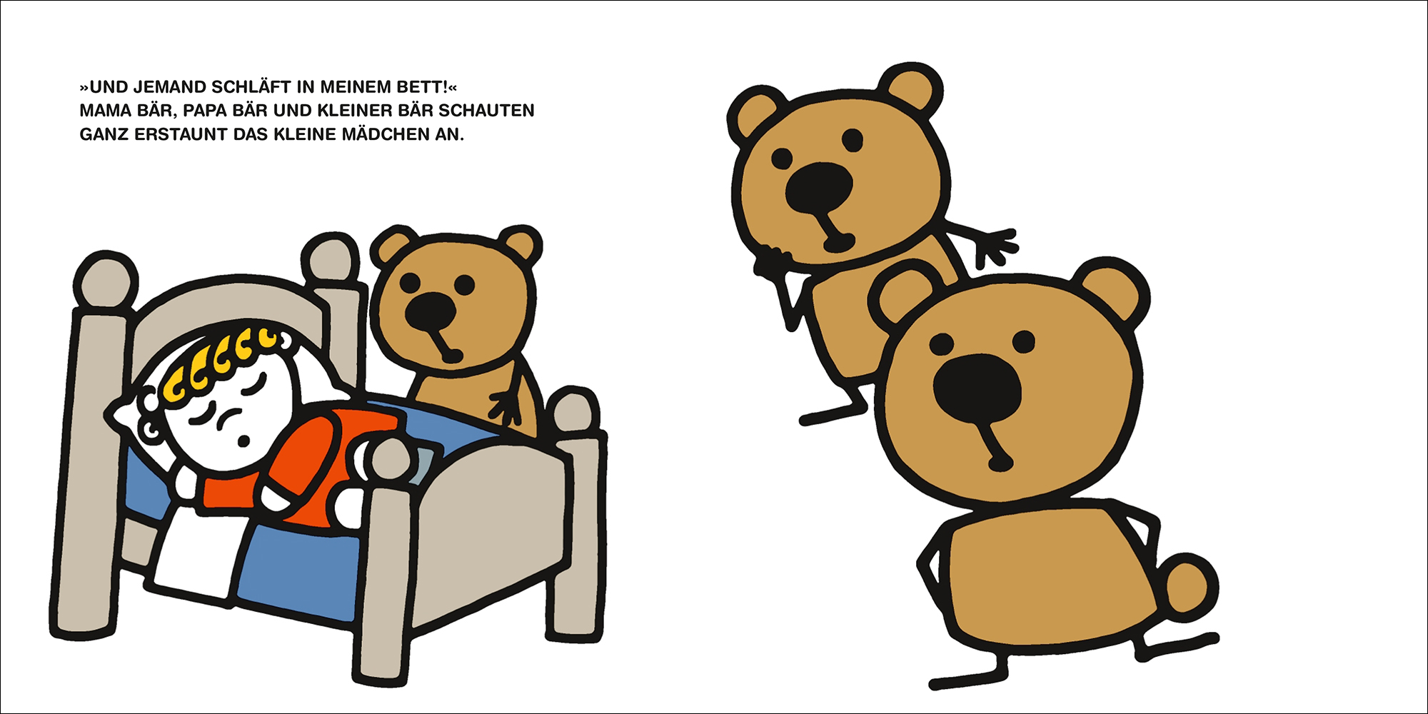 Während die Bärenfamilie einen Spaziergang macht, schleicht sich das kleine Goldlöckchen in ihr Haus. Die Tasse, der Stuhl, das Bett vom kleinen Bären sind alle wie für sie gemacht. Also Zeit für ein Nickerchen. Als Mama und Papa Bär mit ihrem Kind zurückkehren, staunen sie nicht schlecht. Die lustige Geschichte über eine Bärenfamilie, die von einem kleinen Gast mit blonden Locken überrascht wird.