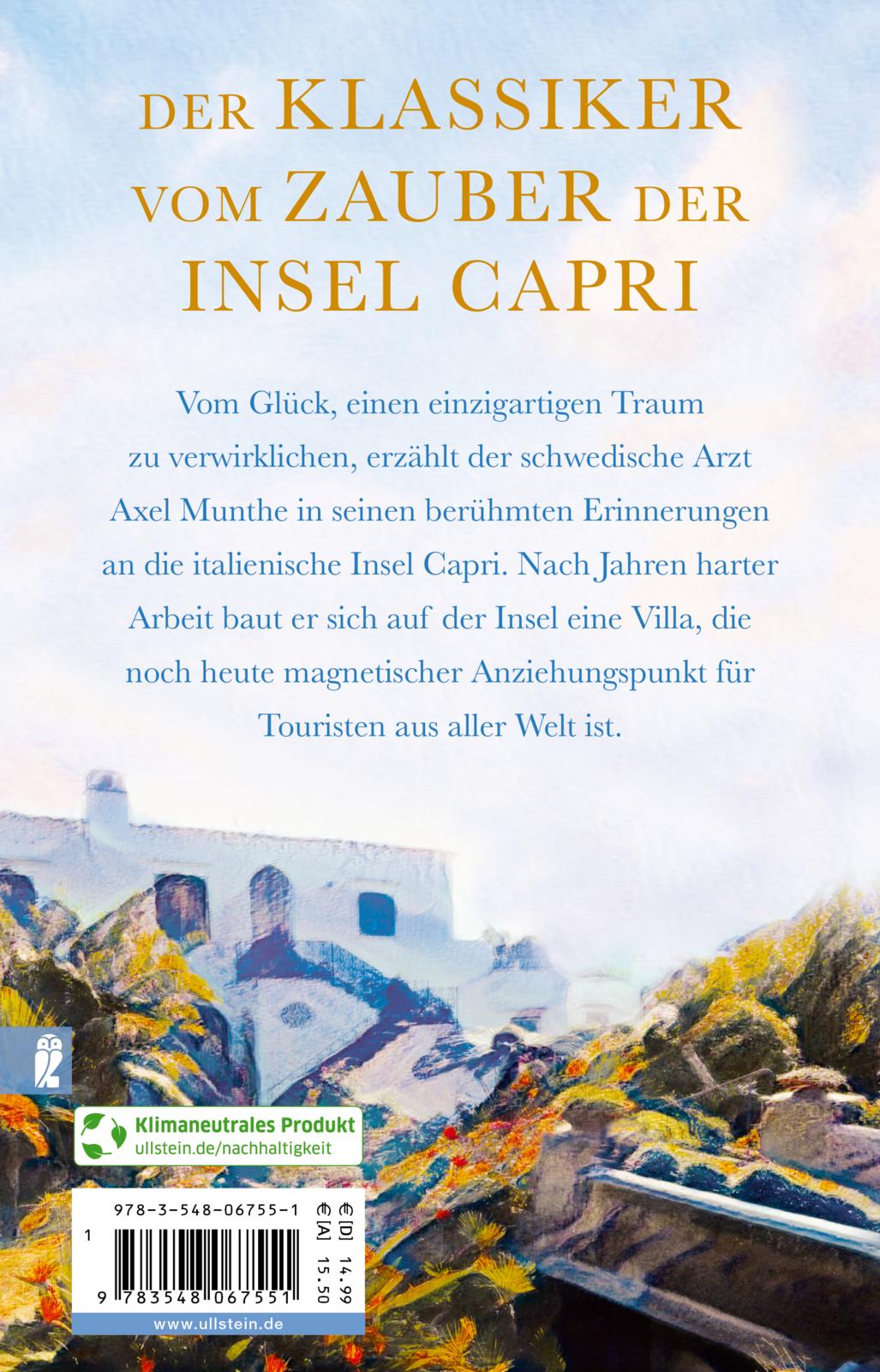 In lebendigen Geschichten und Anekdoten erzählt Axel Munthe von seinem reichen Leben auf Capri und zeigt, wie tief die antike Mythologie in der Vorstellungswelt der Menschen zu allen Zeiten verwurzelt war und es bis heute ist. Als achtzehnjähriger Medizinstudent entdeckte er die Insel und die traumhaft gelegene kleine Kapelle San Michele. Er verliebte sich in diesen einzigartigen Ort und träumte davon, sich irgendwann vor der atemberaubenden Kulisse der Bucht von Neapel ein Haus ganz nach seinen Wünschen zu bauen. Er arbeitete hart, hatte Erfolg als Modearzt des europäischen Adels, behandelte aber auch die Armen, die Diphteriekranken am Montparnasse, die Typhusfälle unter schwedischen Arbeitern und die an Cholera Leidenden bei einer Epidemie in Neapel. Zwölf Jahre nach seinem ersten Besuch auf der Insel begann er schließlich mit dem Bau seiner weißen Traumvilla.