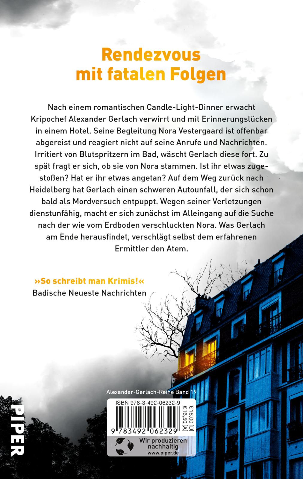 | Schlagworte | Eifersucht • Ermittler • ermittlungsarbeit • Gedächtnisverlust • Heidelberg Krimi • Kommissar Gerlach • Kriminalpolizei • Kriminalroman • Krimi Neuerscheinungen 2022 • Kripo • Kripochef Alexander Gerlach • Lebensgefahr • Mordanschlag • Polizeiarbeit • Rache • spannend • SPIEGEL-Bestsellerautor |