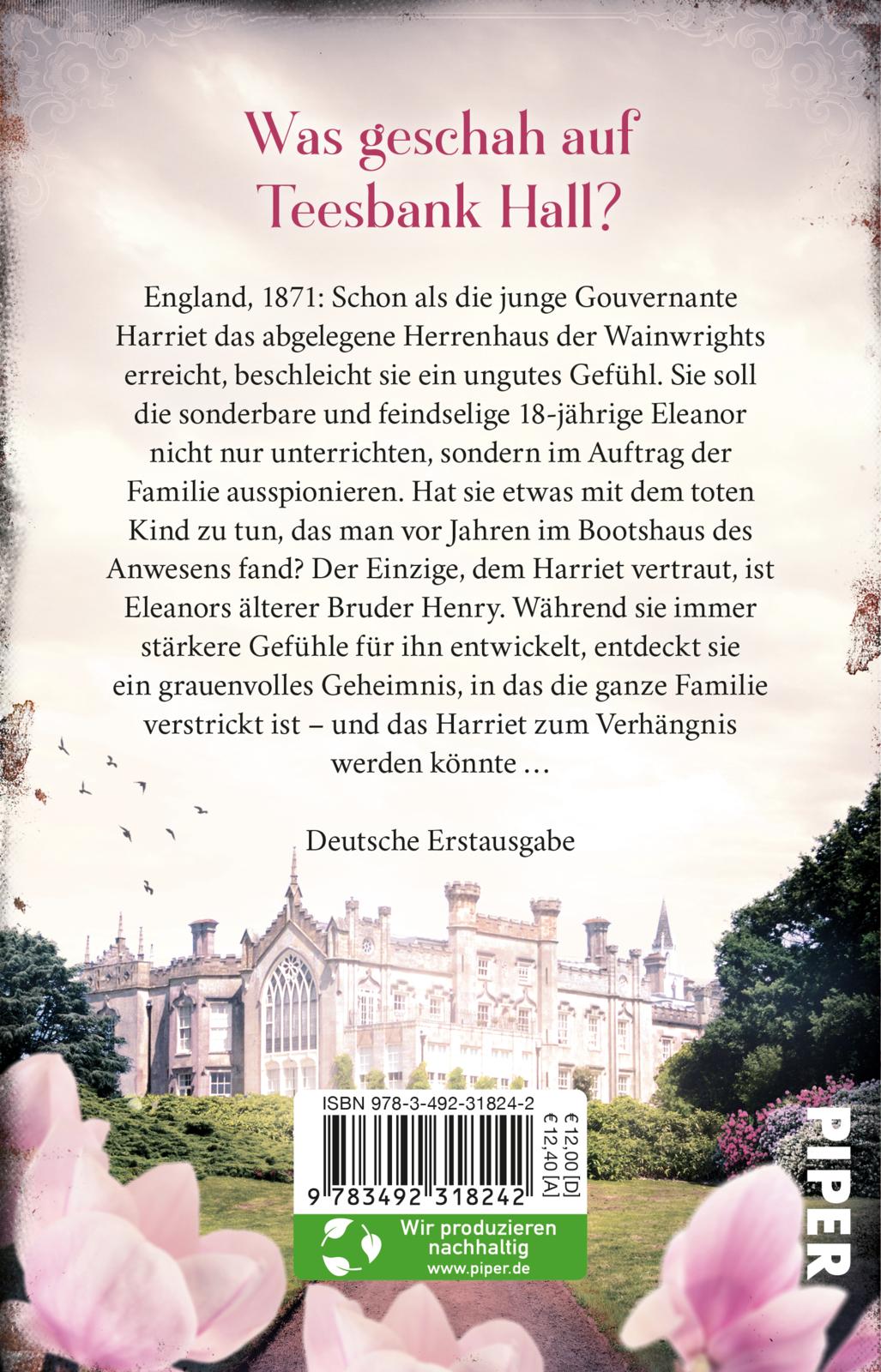England, 1871: Schon als die junge Gouvernante Harriet das abgelegene Anwesen erreicht, beschleicht sie ein ungutes Gefühl. Sie soll die seltsame und feindselige 18-jährige Eleanor nicht nur unterrichten, sondern im Auftrag der Familie ausspionieren. Hat es etwas mit dem toten Kind zu tun, das man vor Jahren im Bootshaus fand? Der Einzige, dem Harriet in dem düsteren Herrenhaus vertraut, ist Eleanors Bruder Henry. Während sie immer stärkere Gefühle für ihn entwickelt, entdeckt sie ein grausiges Geheimnis, in das die ganze Familie verstrickt ist - und das Harriet zum Verhängnis werden könnte ...
